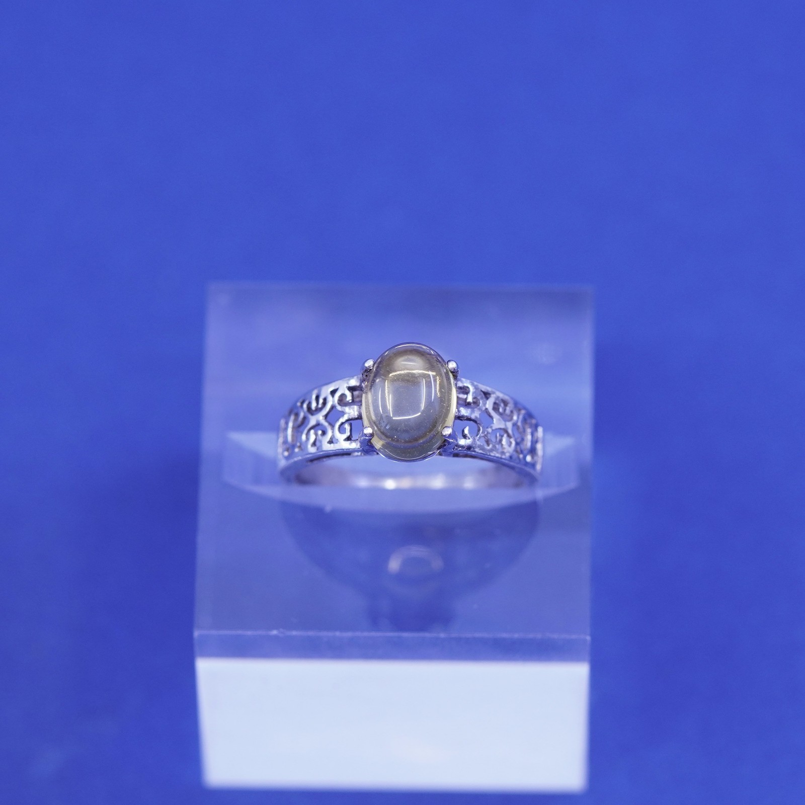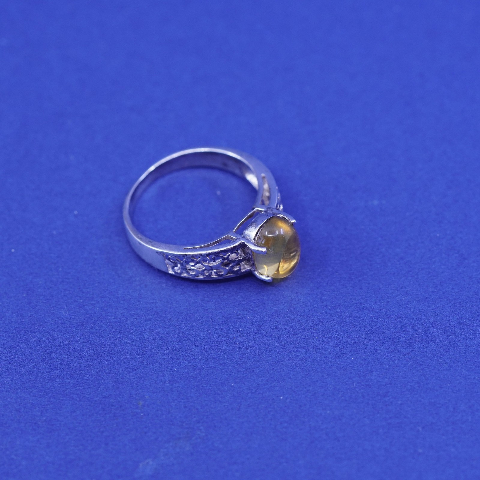 Size 7.25, vintage sterling 925 silver handmade filigree ring w/ yellow citrine