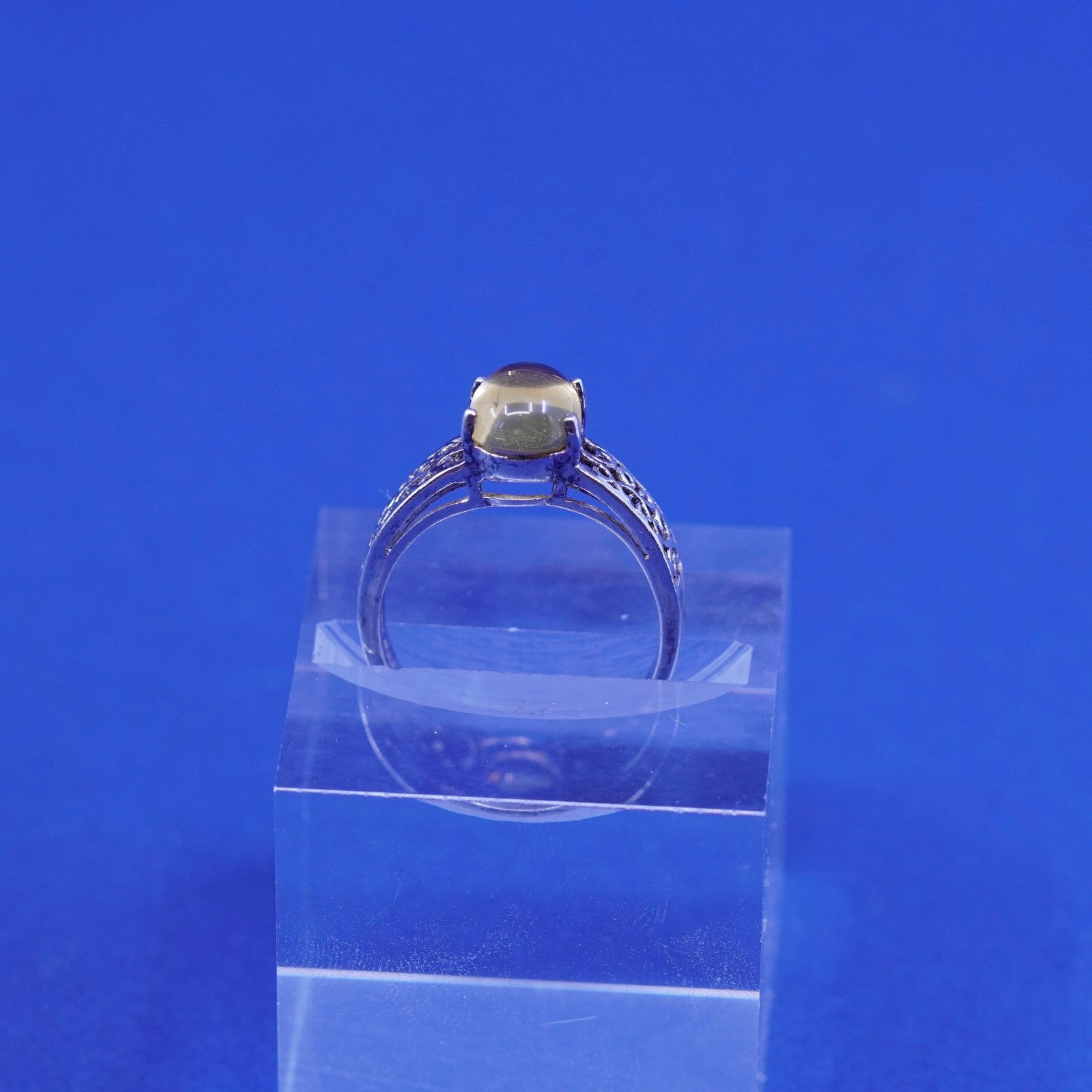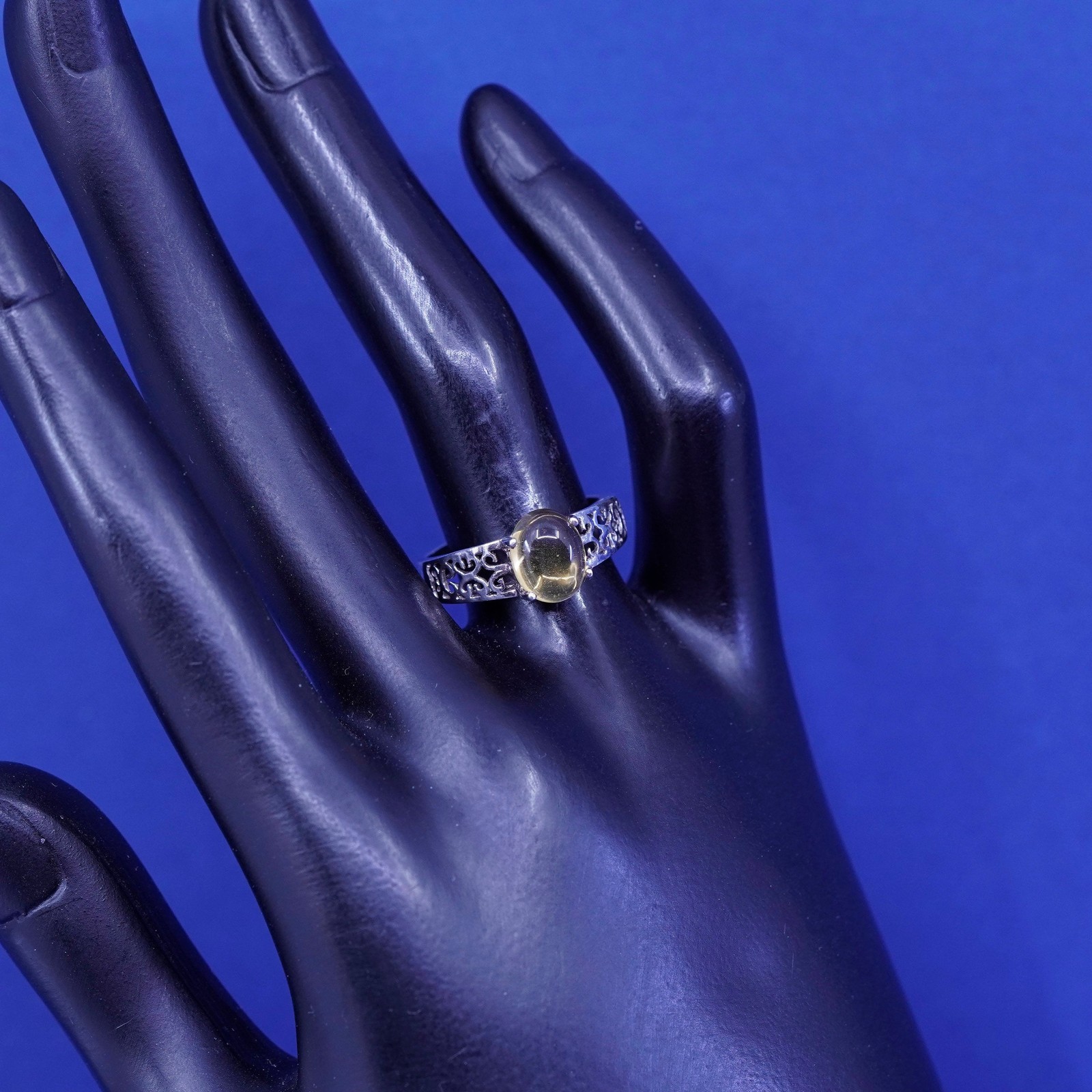 как выглядит Size 7.25, vintage sterling 925 silver handmade filigree ring w/ yellow citrine фото