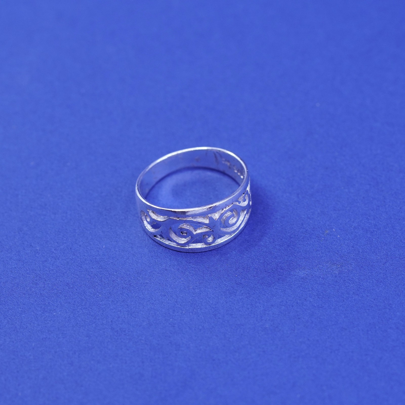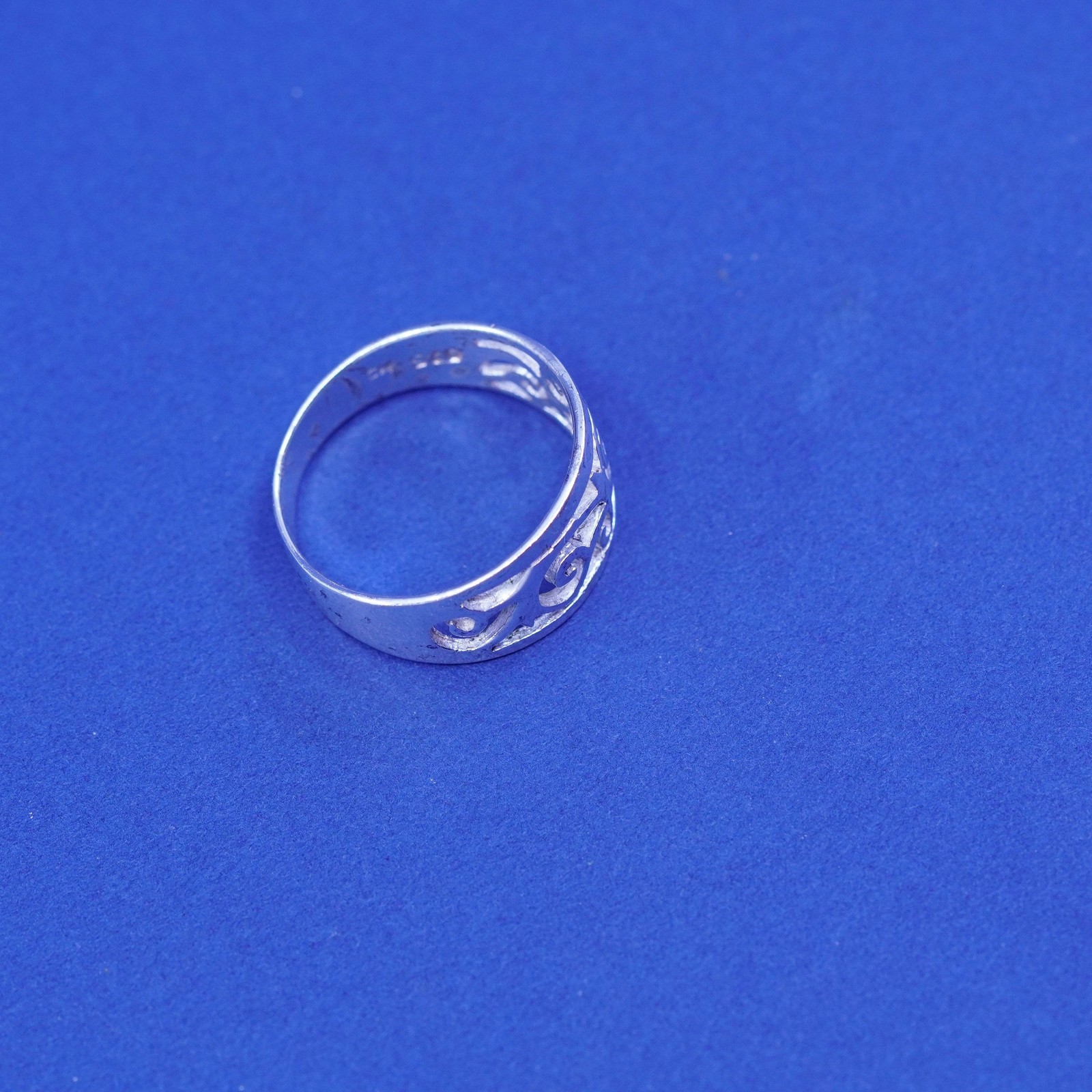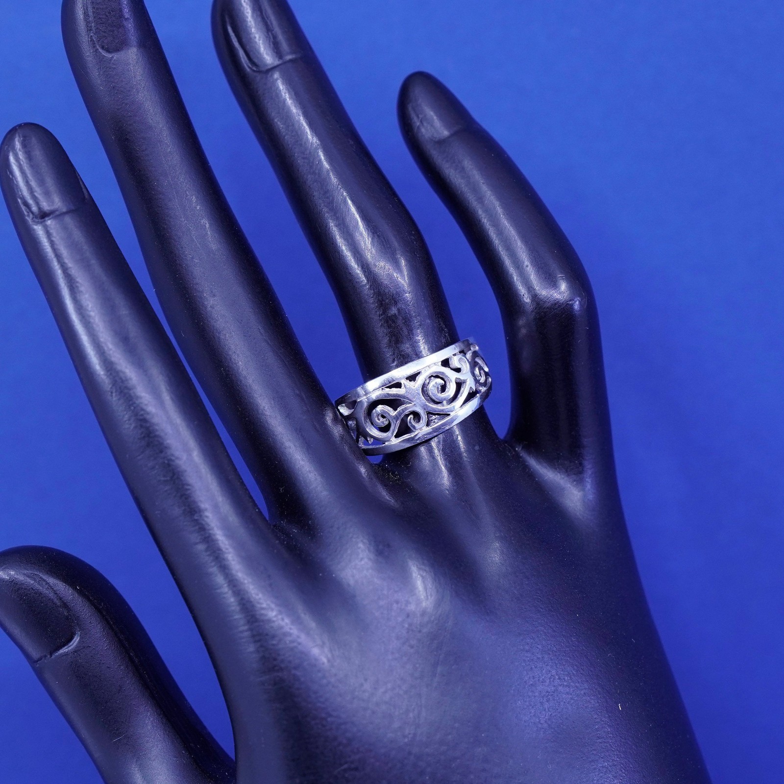 Size 9, vintage Sterling silver handmade ring, 925 Filigree swirl band