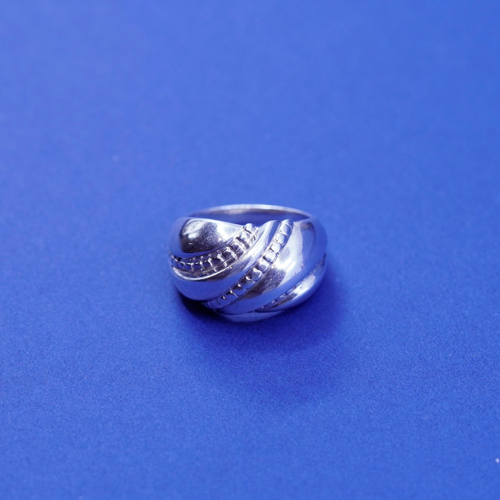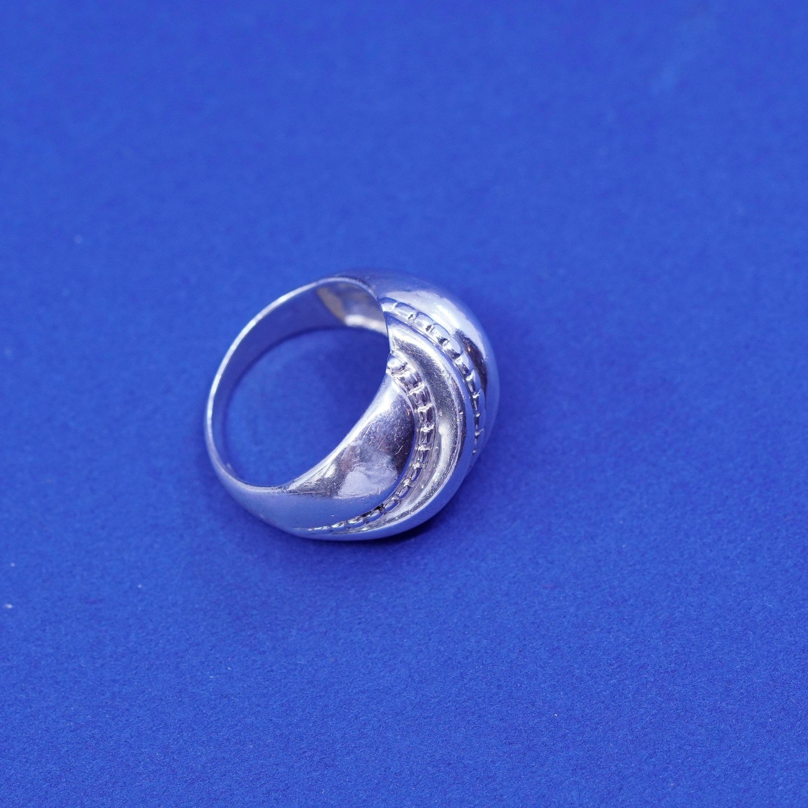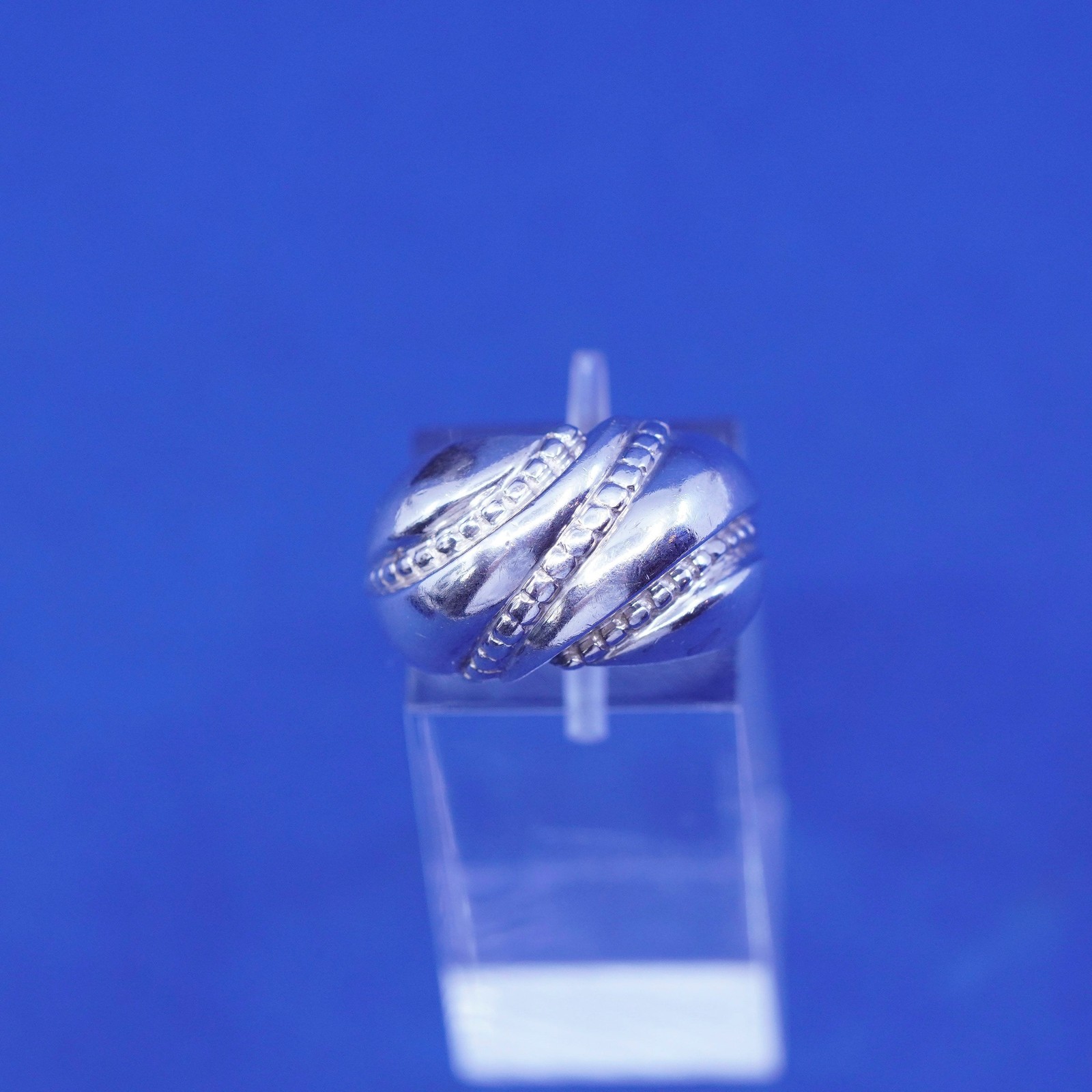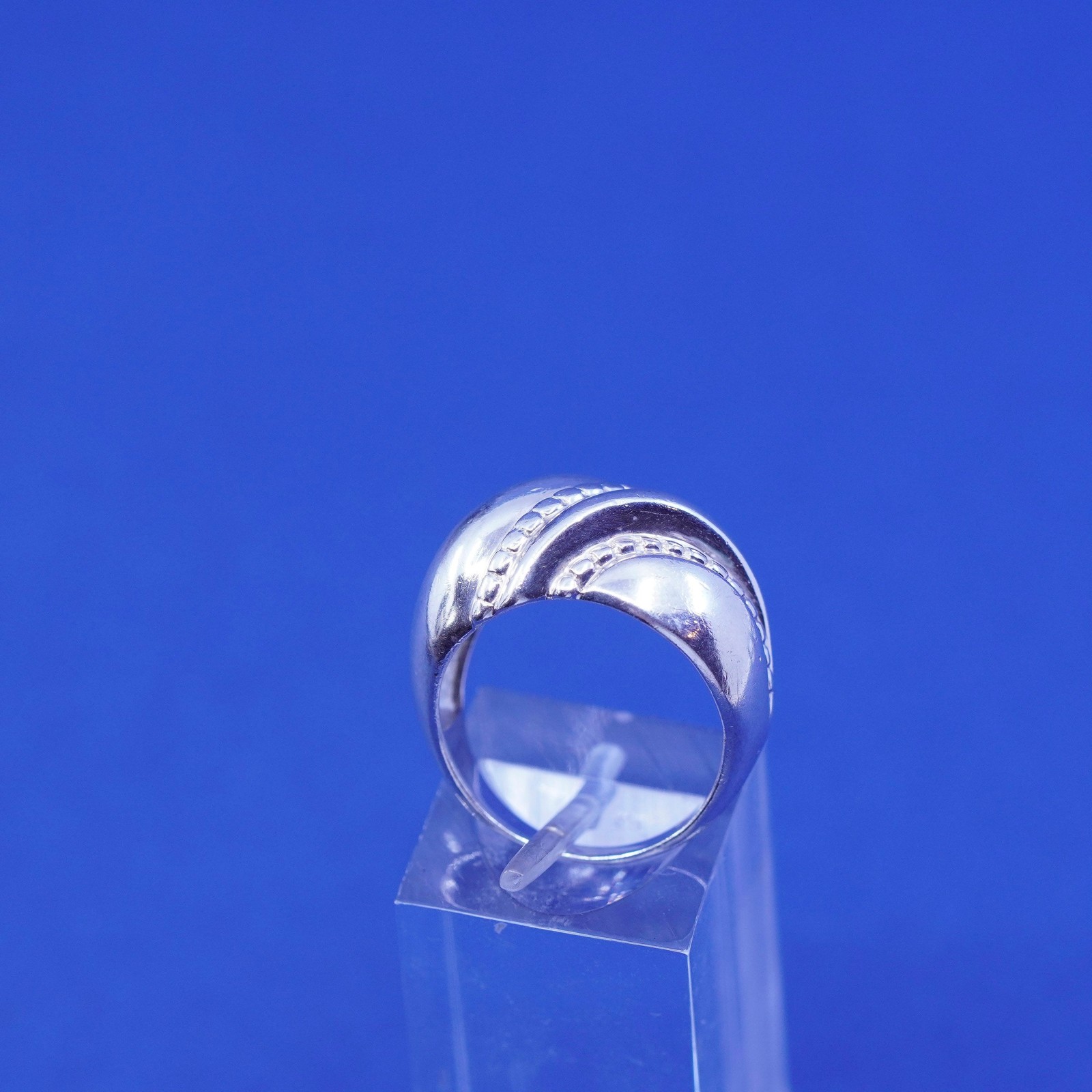 Size 6.5, vtg Sterling silver handmade ribbed ring, 925 statement band w/ wave