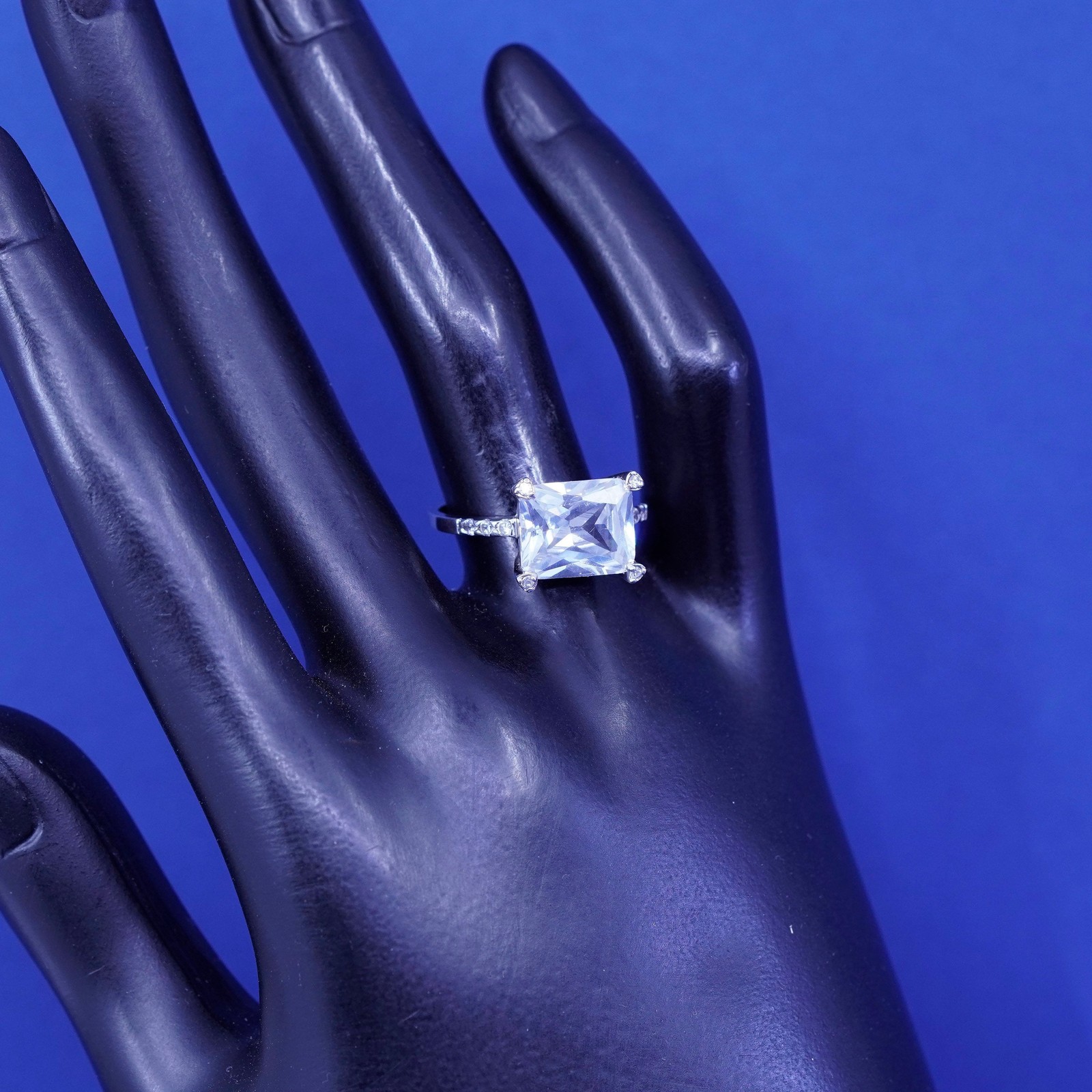 Size 8.5, vintage Sterling 925 silver engagement anniversary ring w/ cluster Cz