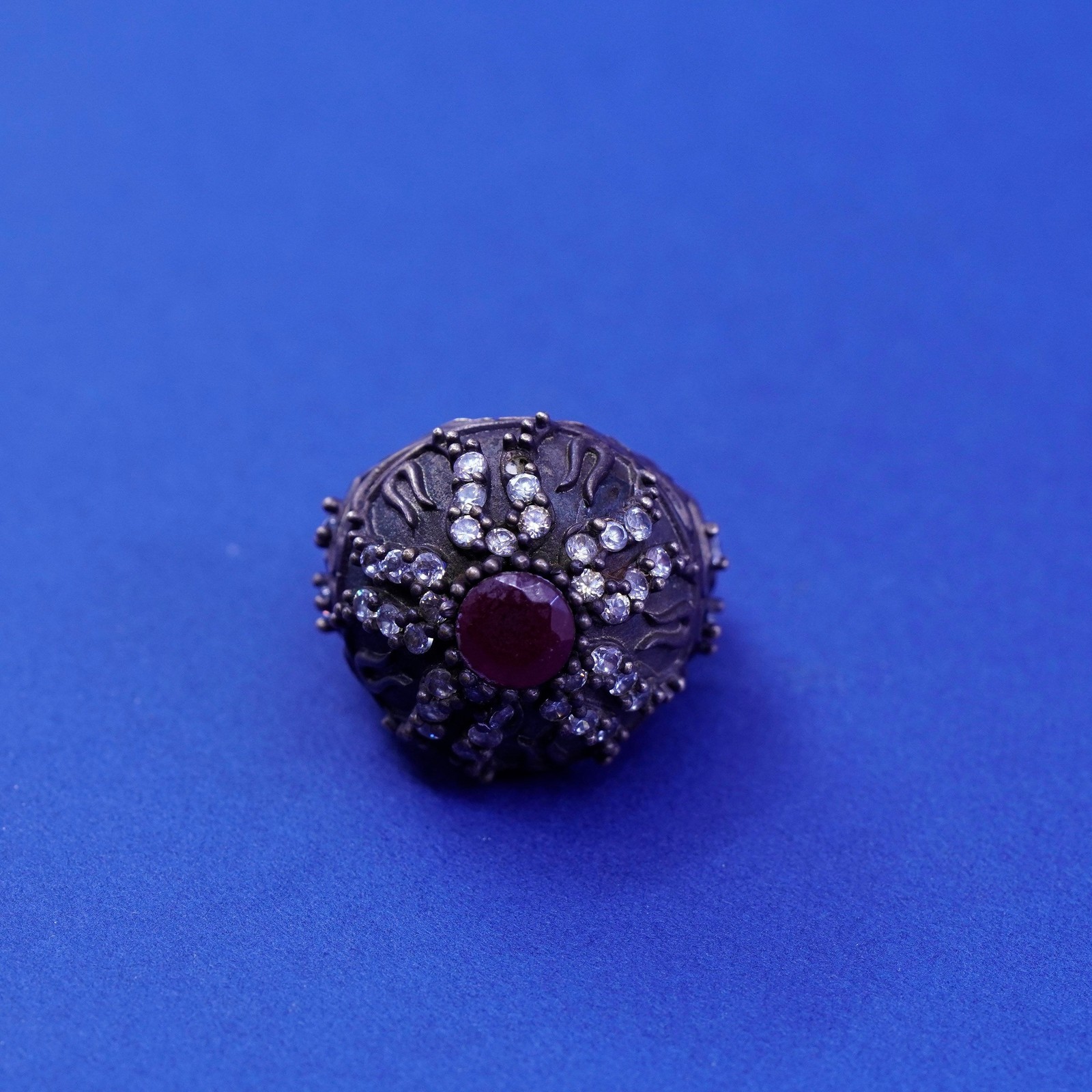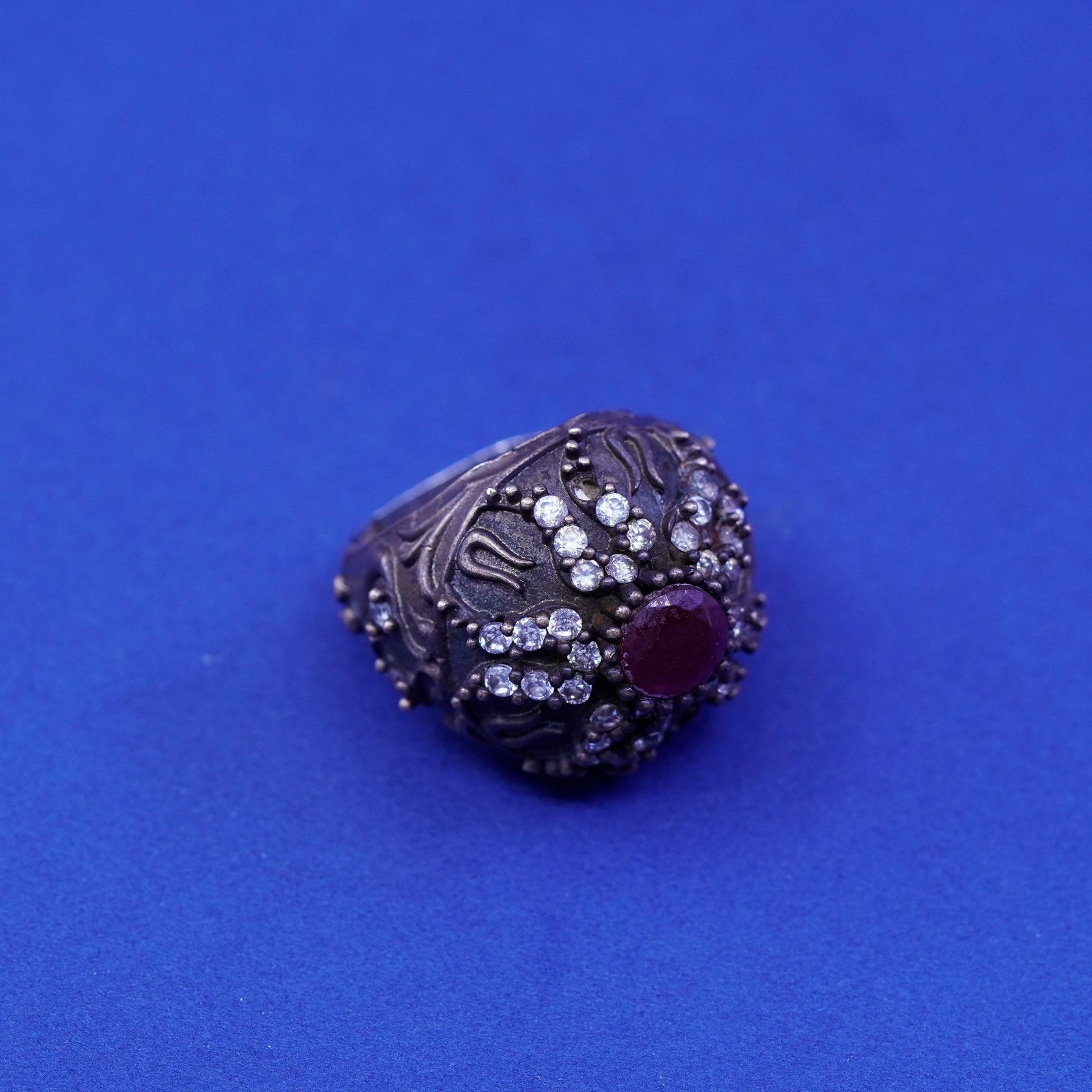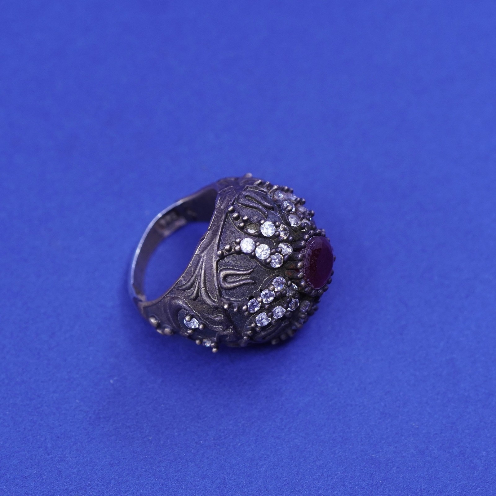 как выглядит Size 6.25, vintage Sterling 925 silver handmade crown Statement ring ruby Cz фото
