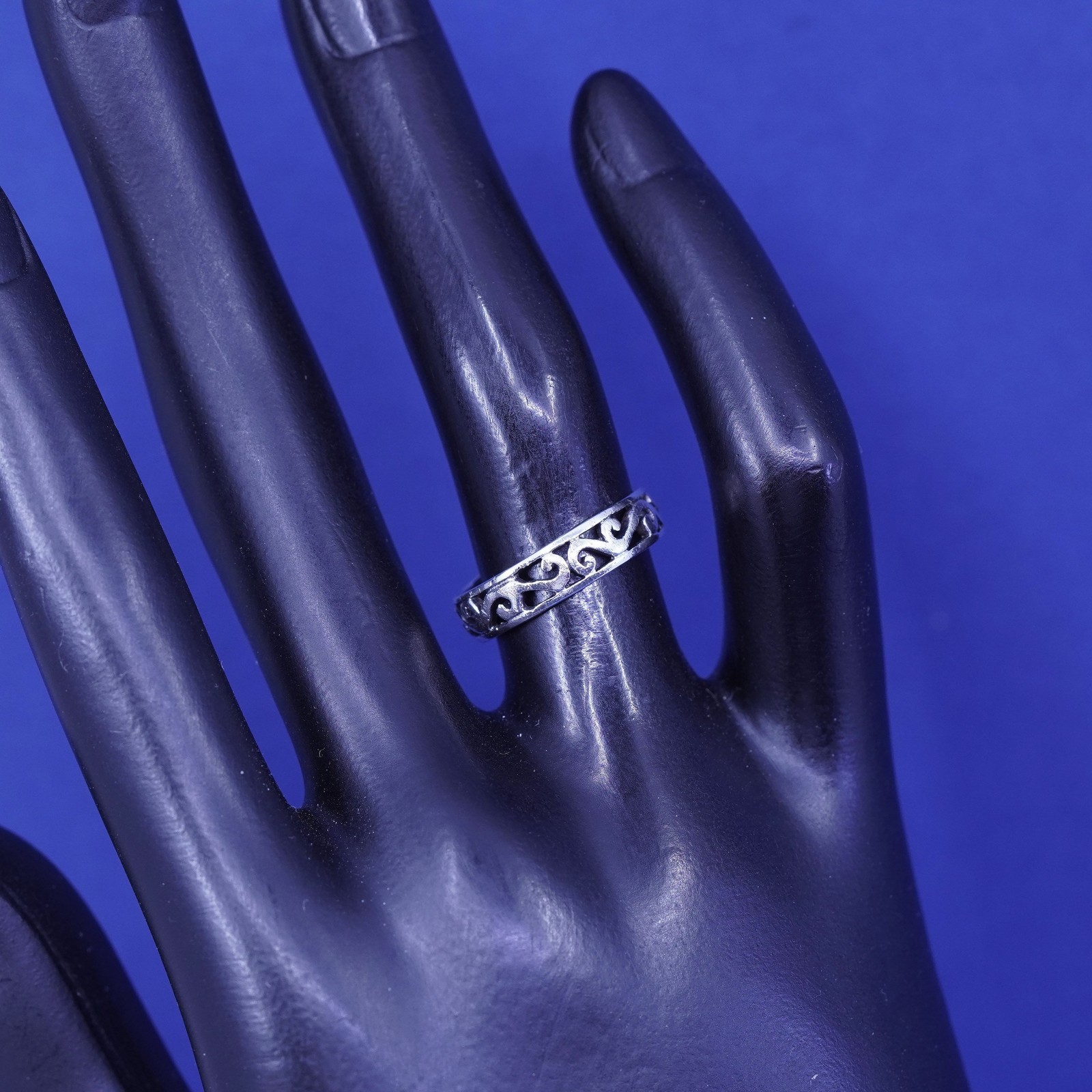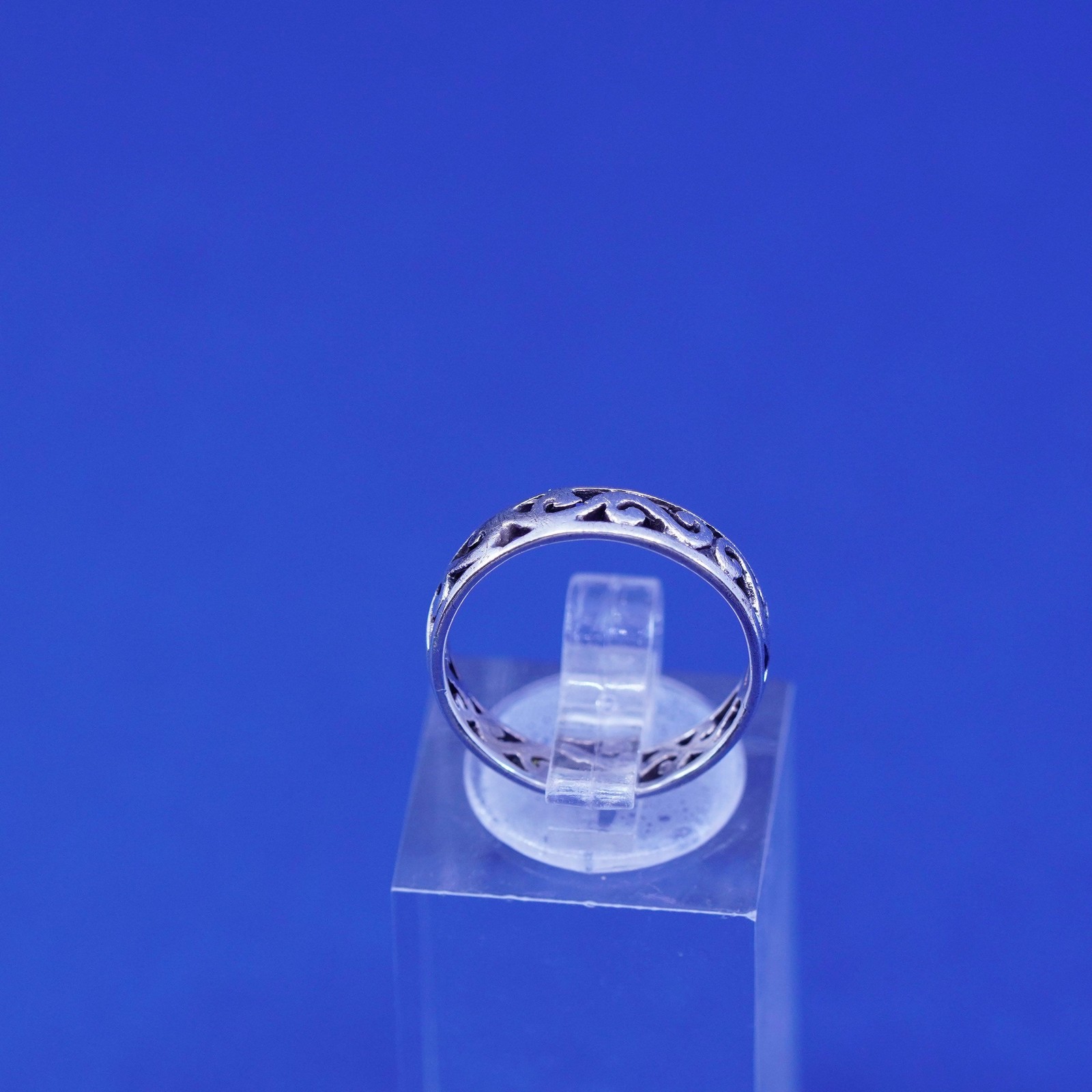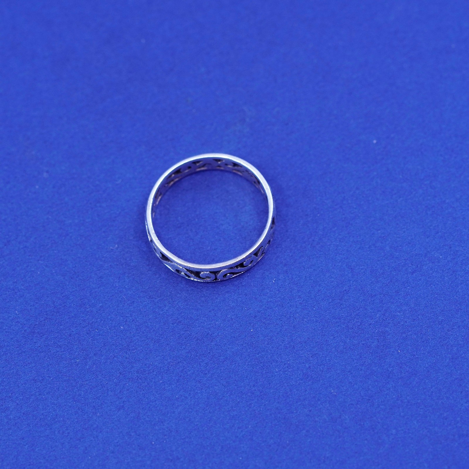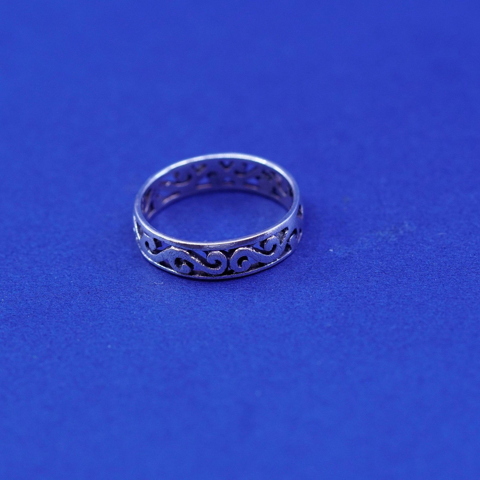 Size 5.25, vintage sterling silver handmade ring, 925 filigree whirl band