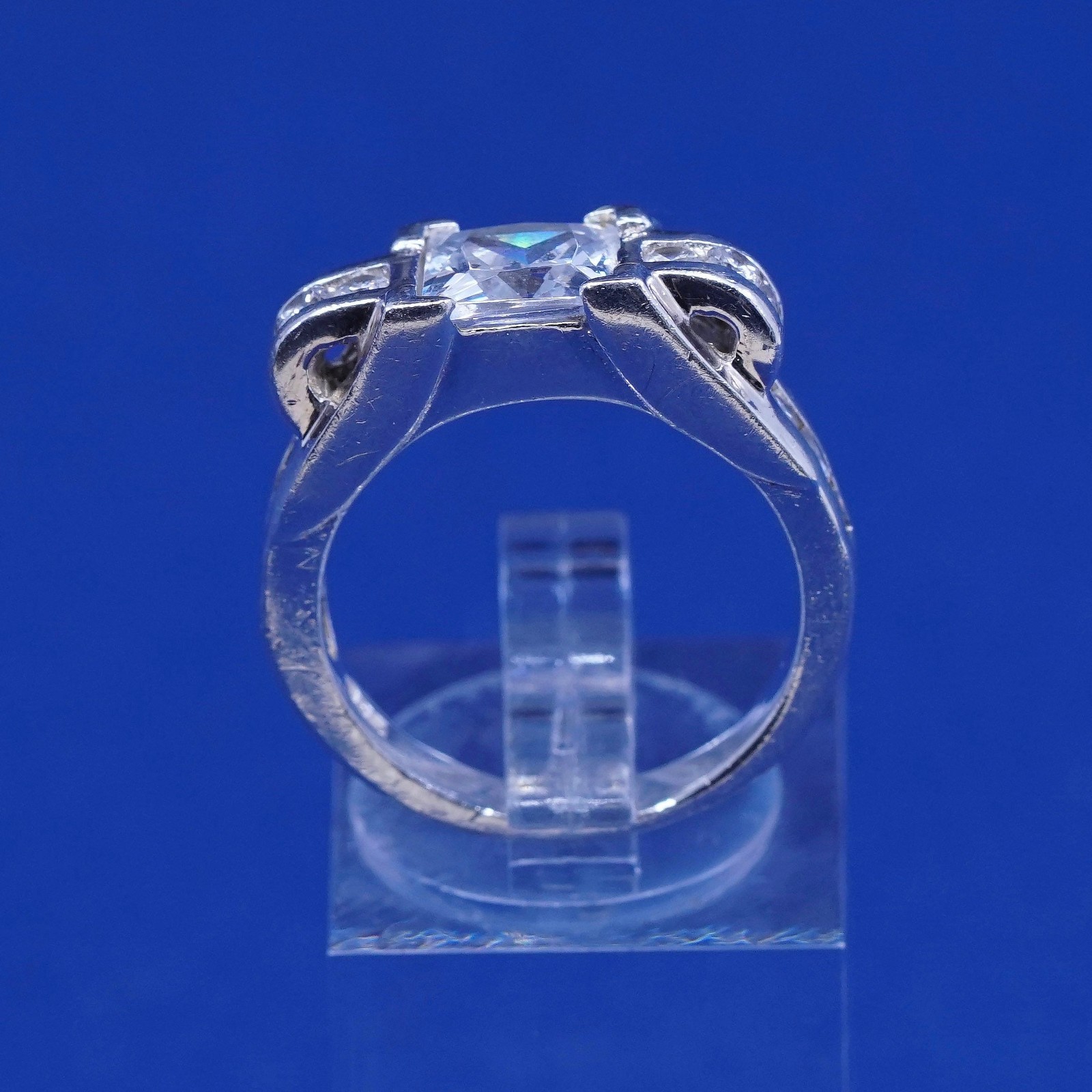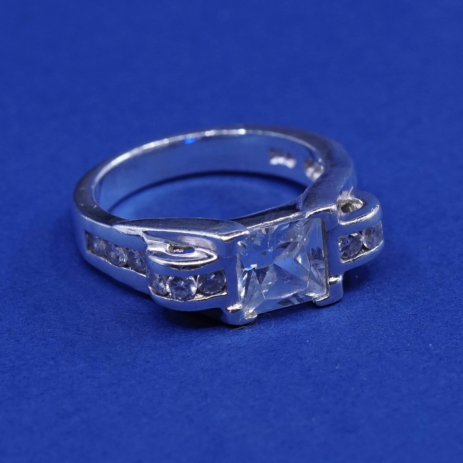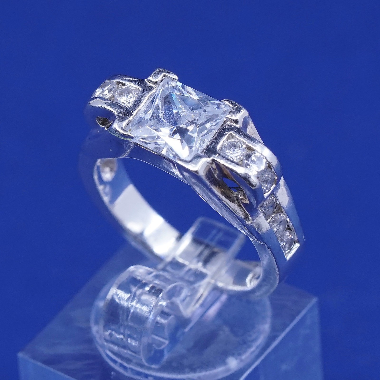 как выглядит Size 7, vintage Sterling silver engagement ring, 925 band w/ clear фото