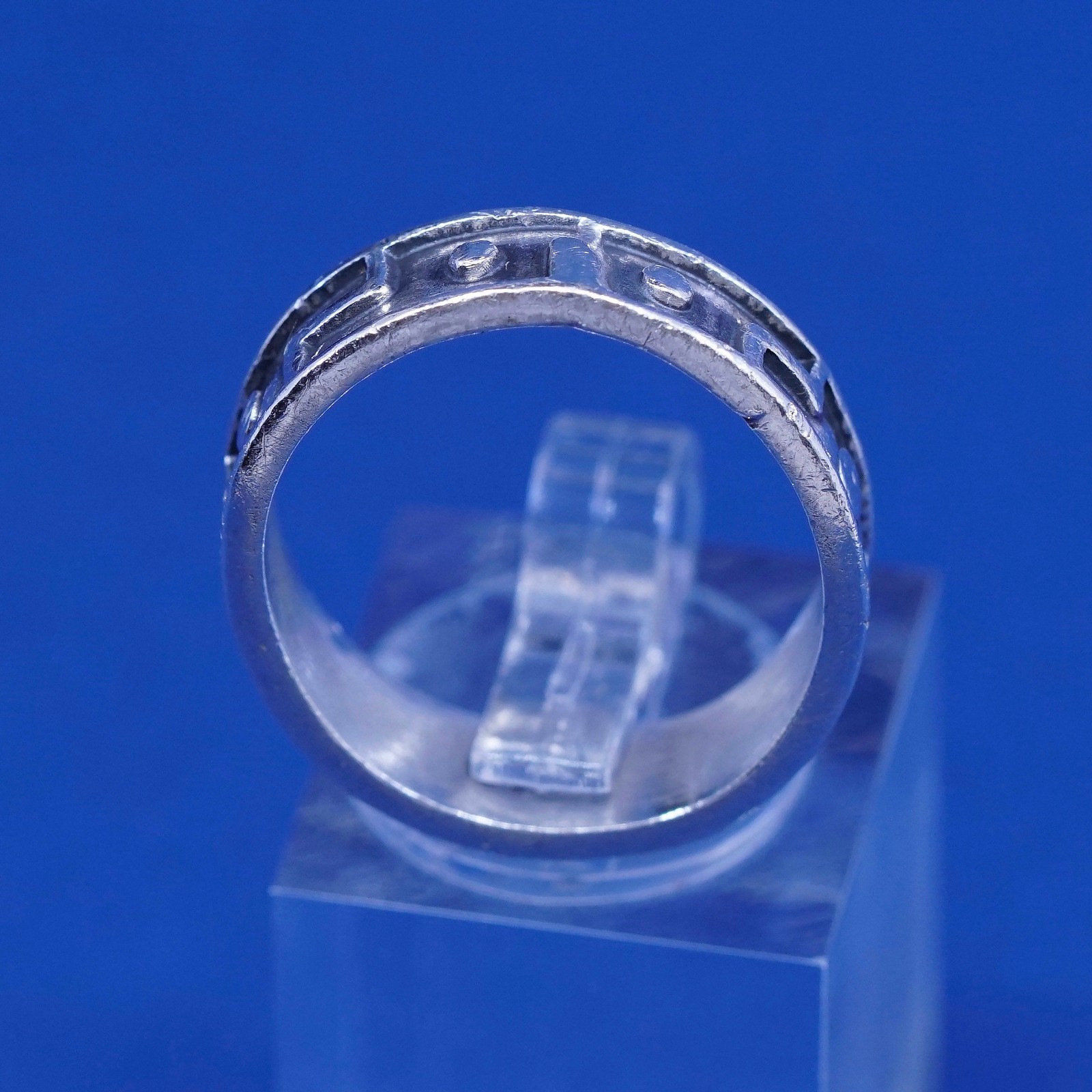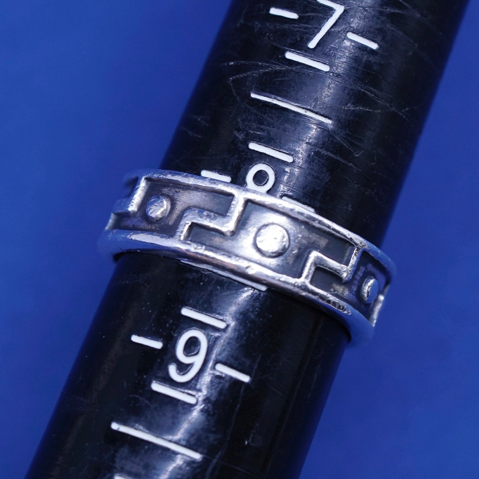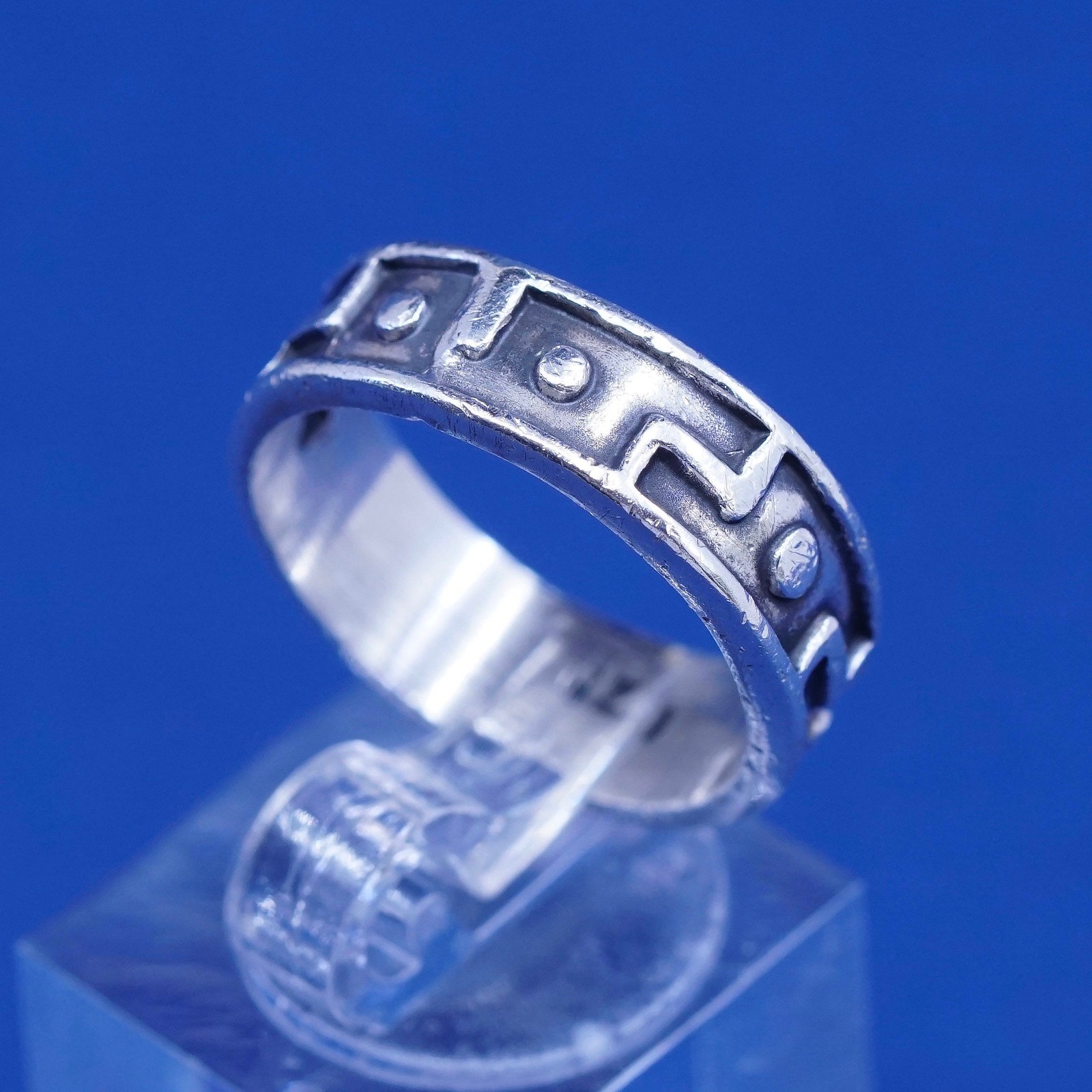 sz 8.25, vtg Sterling silver handmade ring, hopi 925 band w/ Greek key pattern