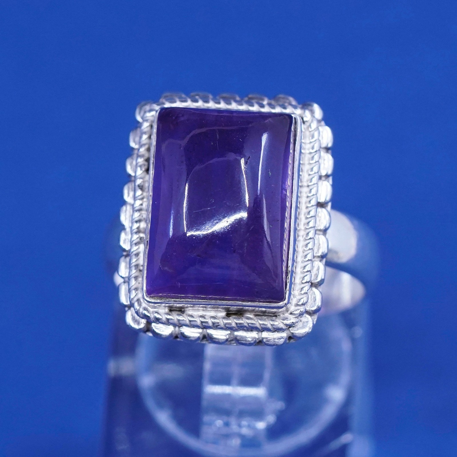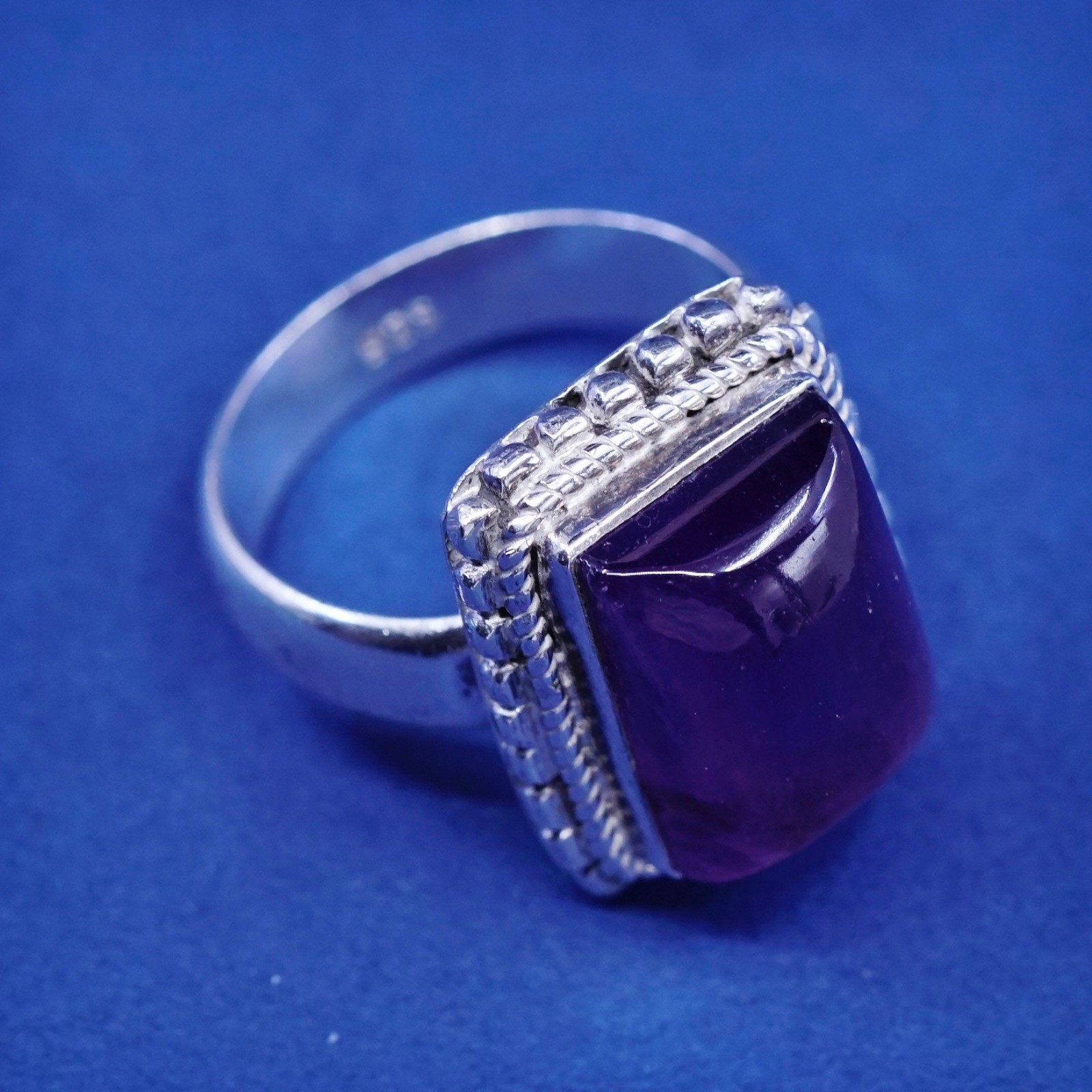 как выглядит Size 8, vintage Sterling 925 silver handmade ring with amethyst and beads фото