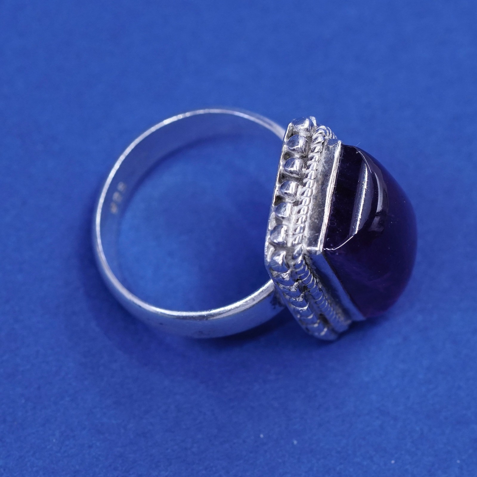 Size 8, vintage Sterling 925 silver handmade ring with amethyst and beads