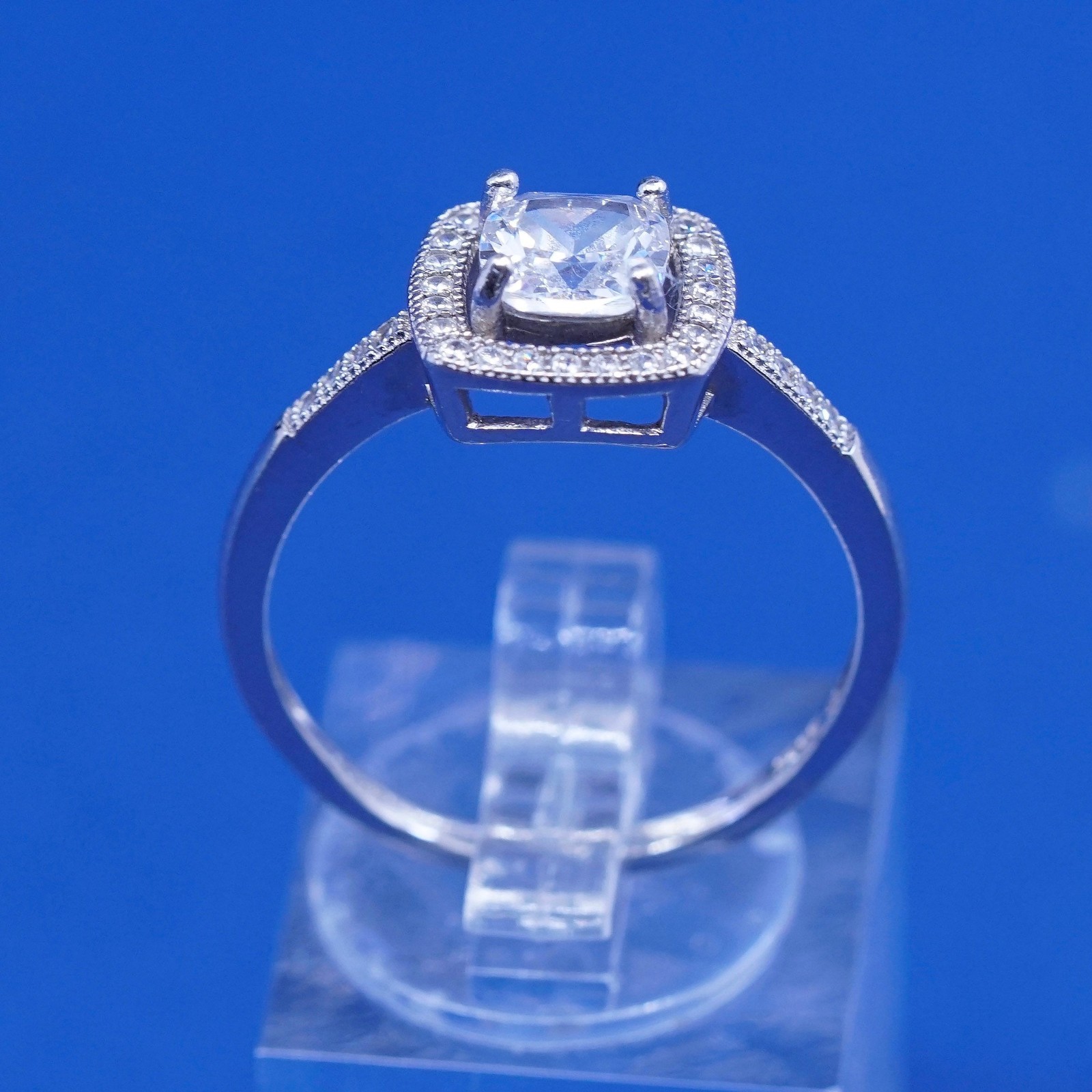 как выглядит sz 9.25, vtg Sterling 925 silver engagement ring, w/ clear cz around фото