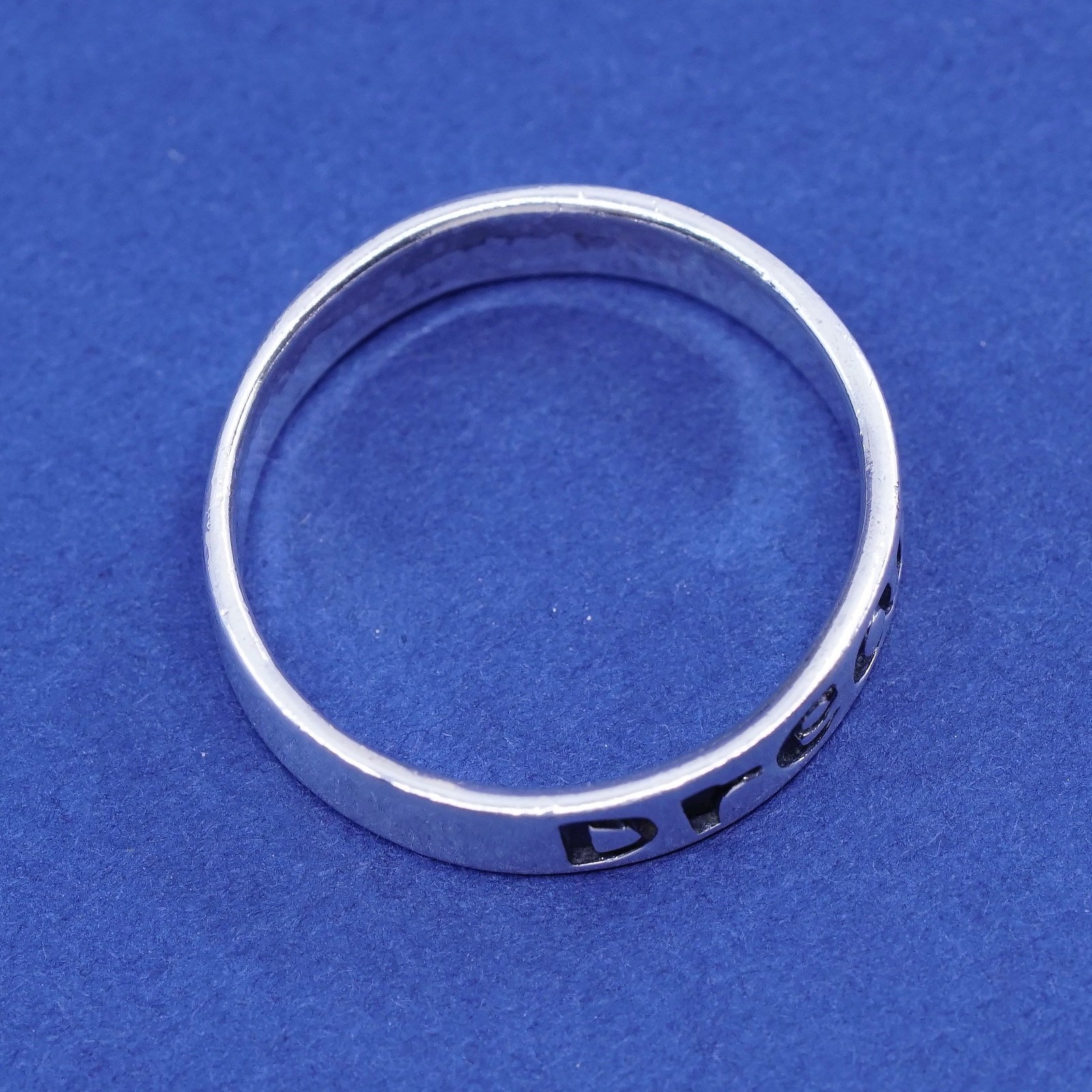 sz 7, vtg Sterling silver handmade ring, 925 inspirational band embossed dream