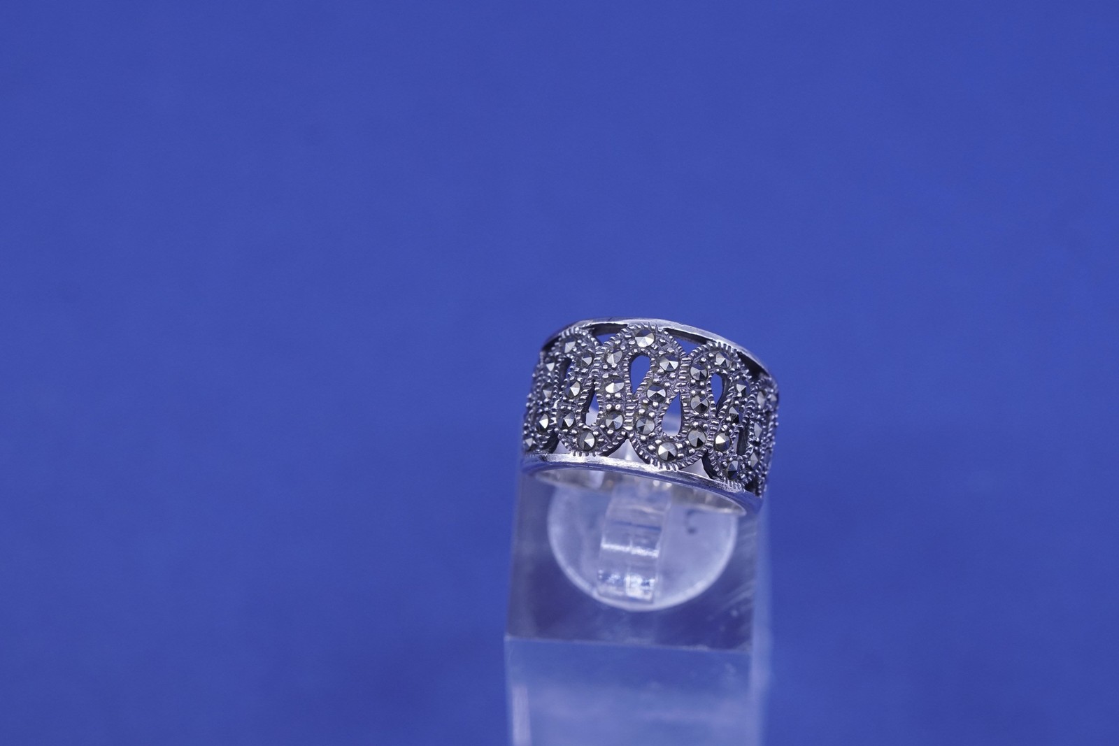 как выглядит Size 6, vintage Sterling silver handmade ring, 925 band with marcasite фото
