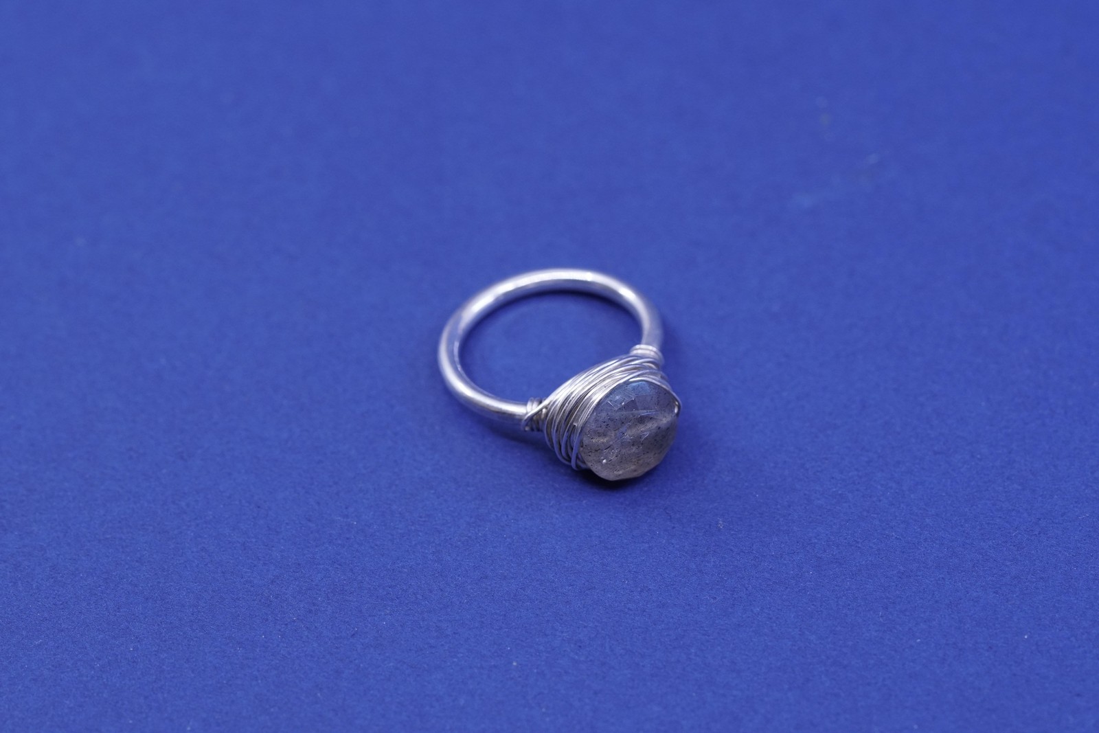 Size 5.5, vintage Sterling 925 silver handmade wired ring with labradorite