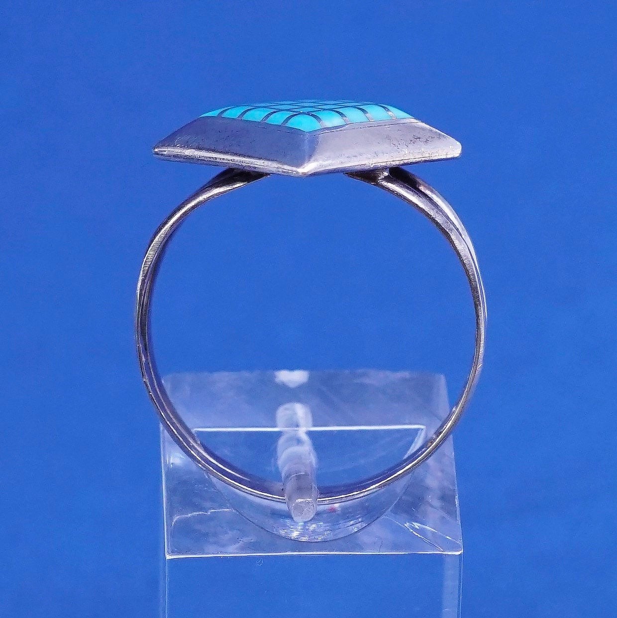 как выглядит sz 10.5, vtg zuni sterling silver handmade ring, 925 w/ turquoise southwestern фото