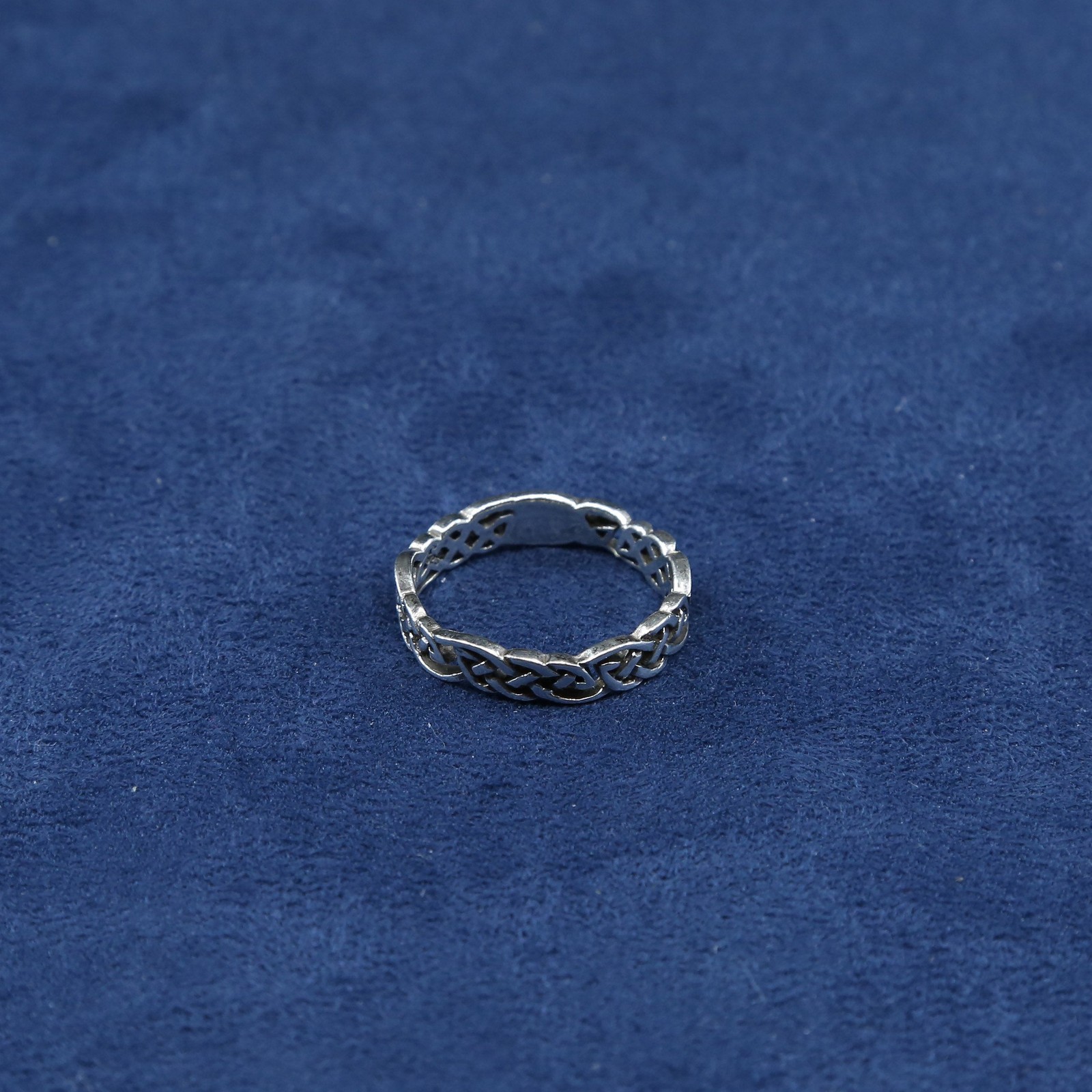 sz 7.75, vtg Sterling silver handmade band, 925 ring w/ woven