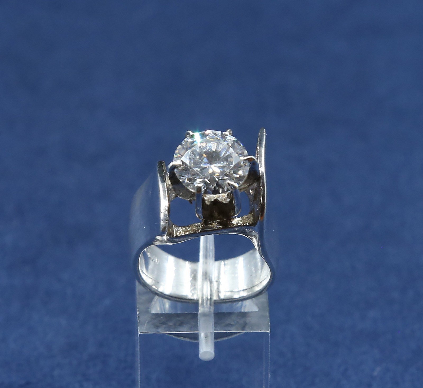 как выглядит sz 7, vtg Sterling silver handmade ring, 925 statement cocktail ring w/ crystal фото