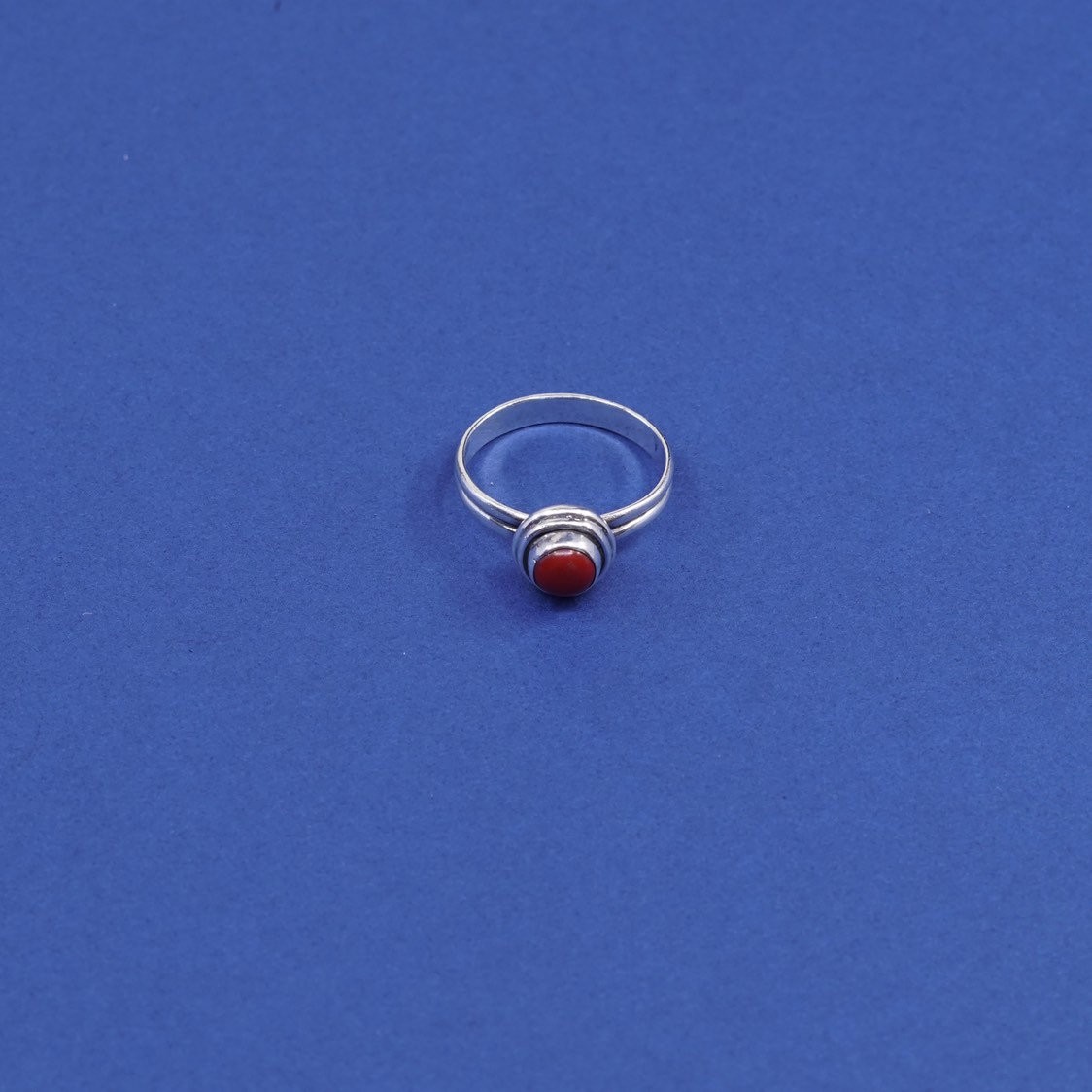 sz 8.25, vtg Sterling silver handmade ring, 925 w/ red onyx stone