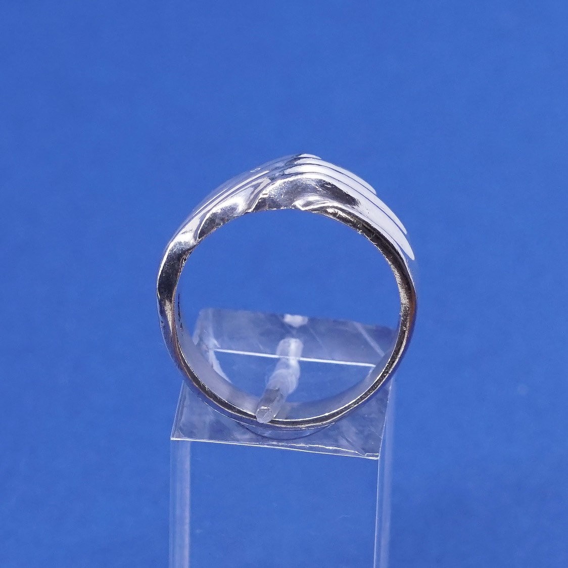 как выглядит Size 9, vtg Sterling silver handmade ribbed ring, 925 statement ring w/ wave фото