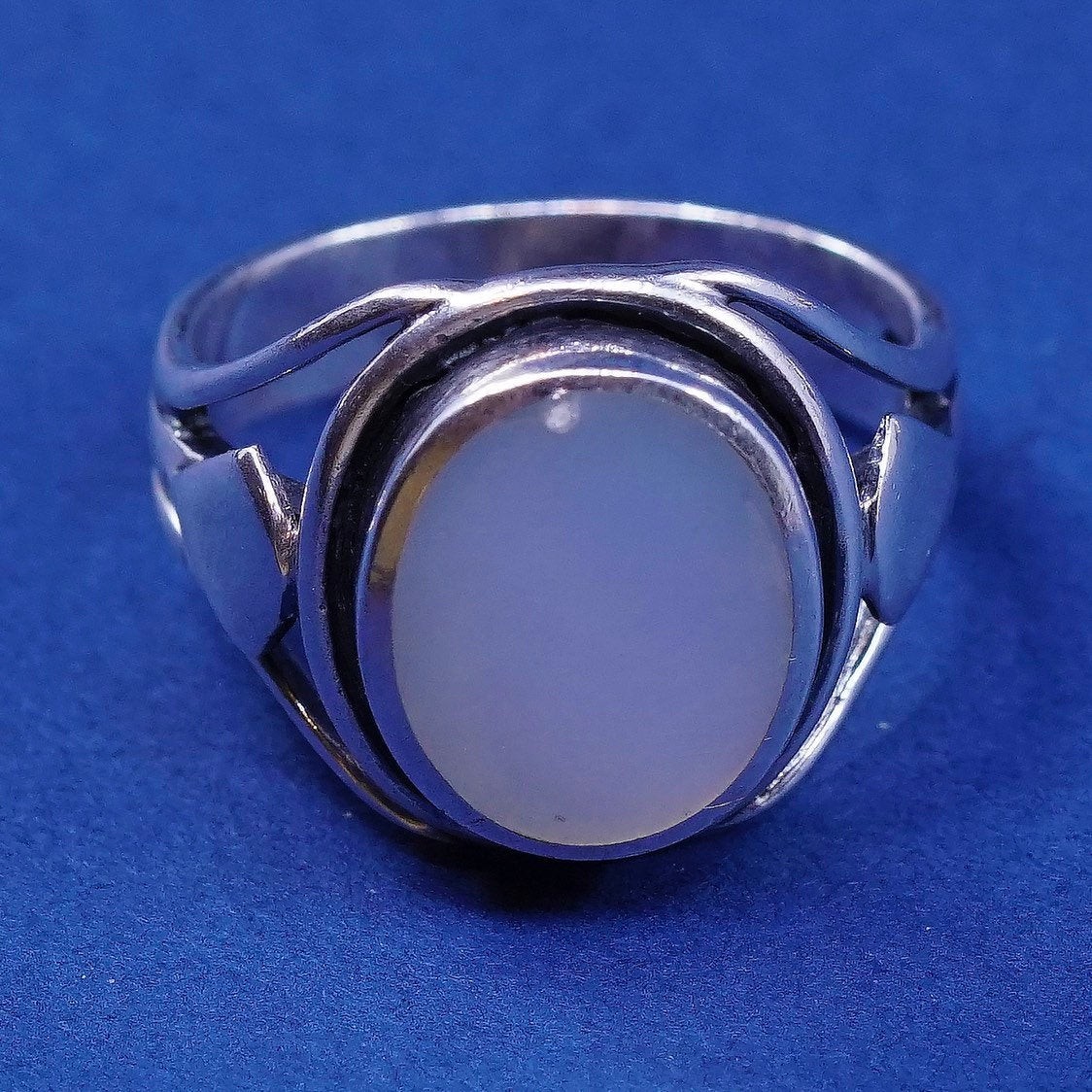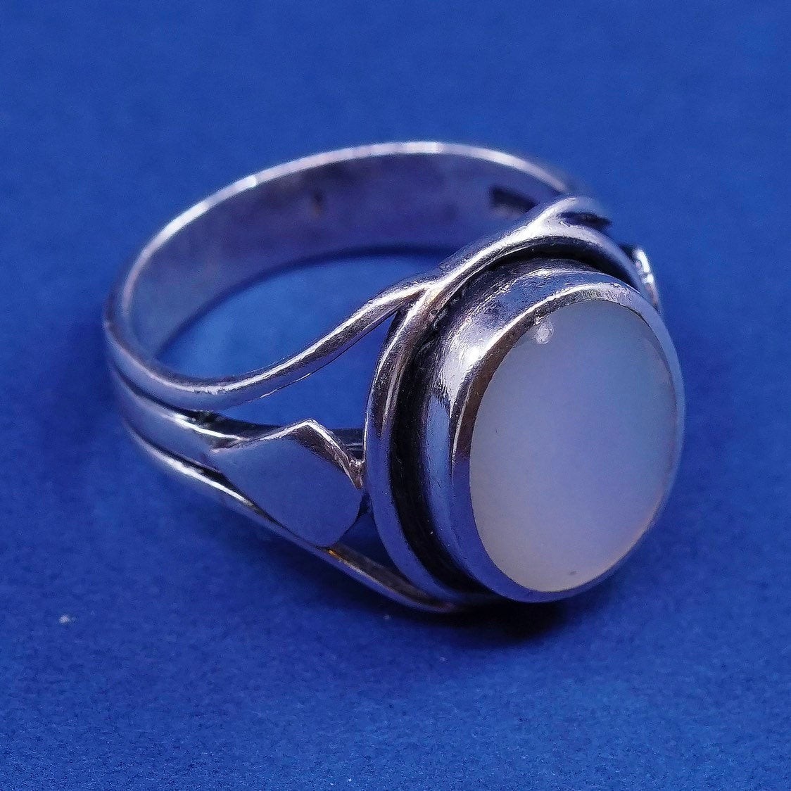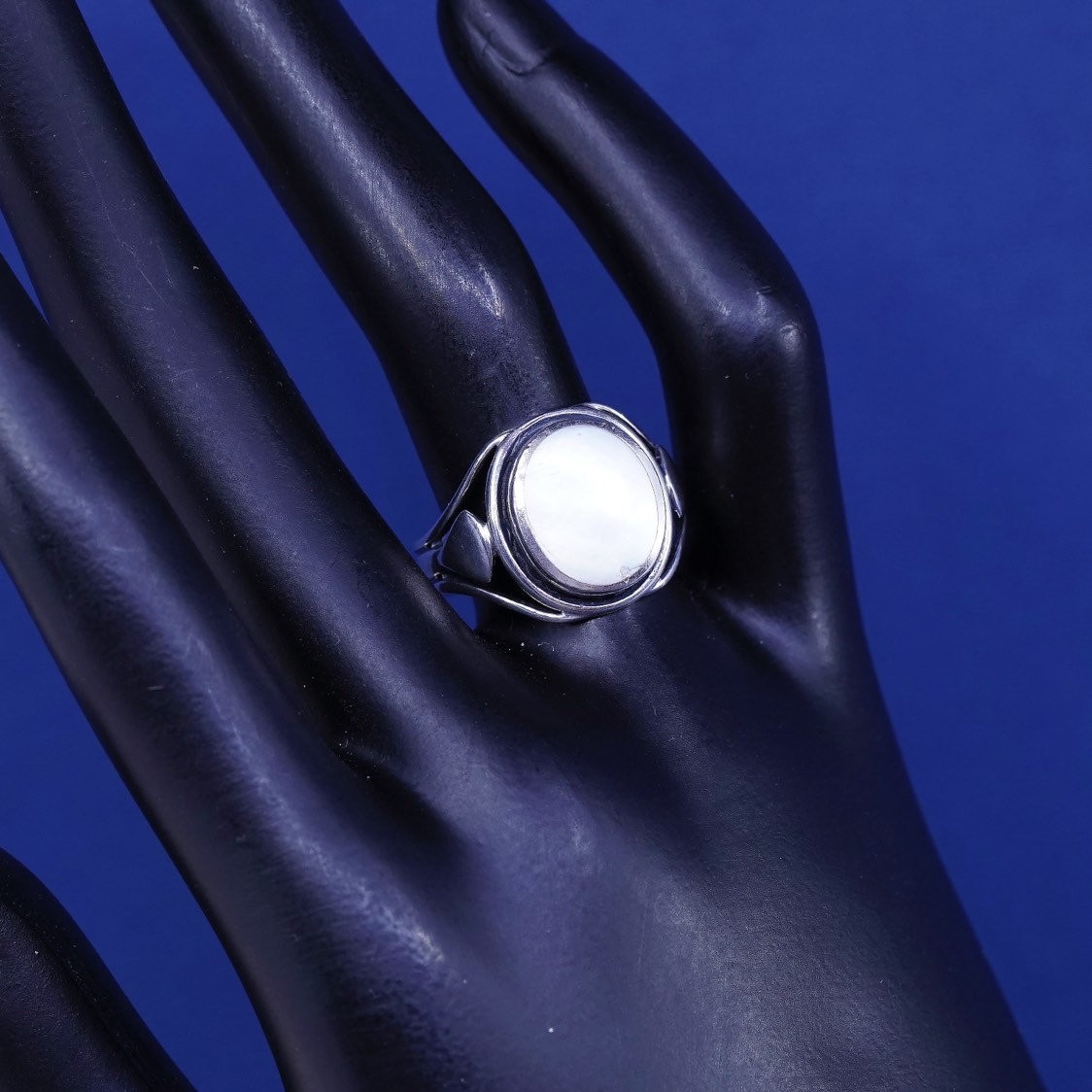 sz 8, vtg sterling silver handmade ring, 925 w/ mother of pearl