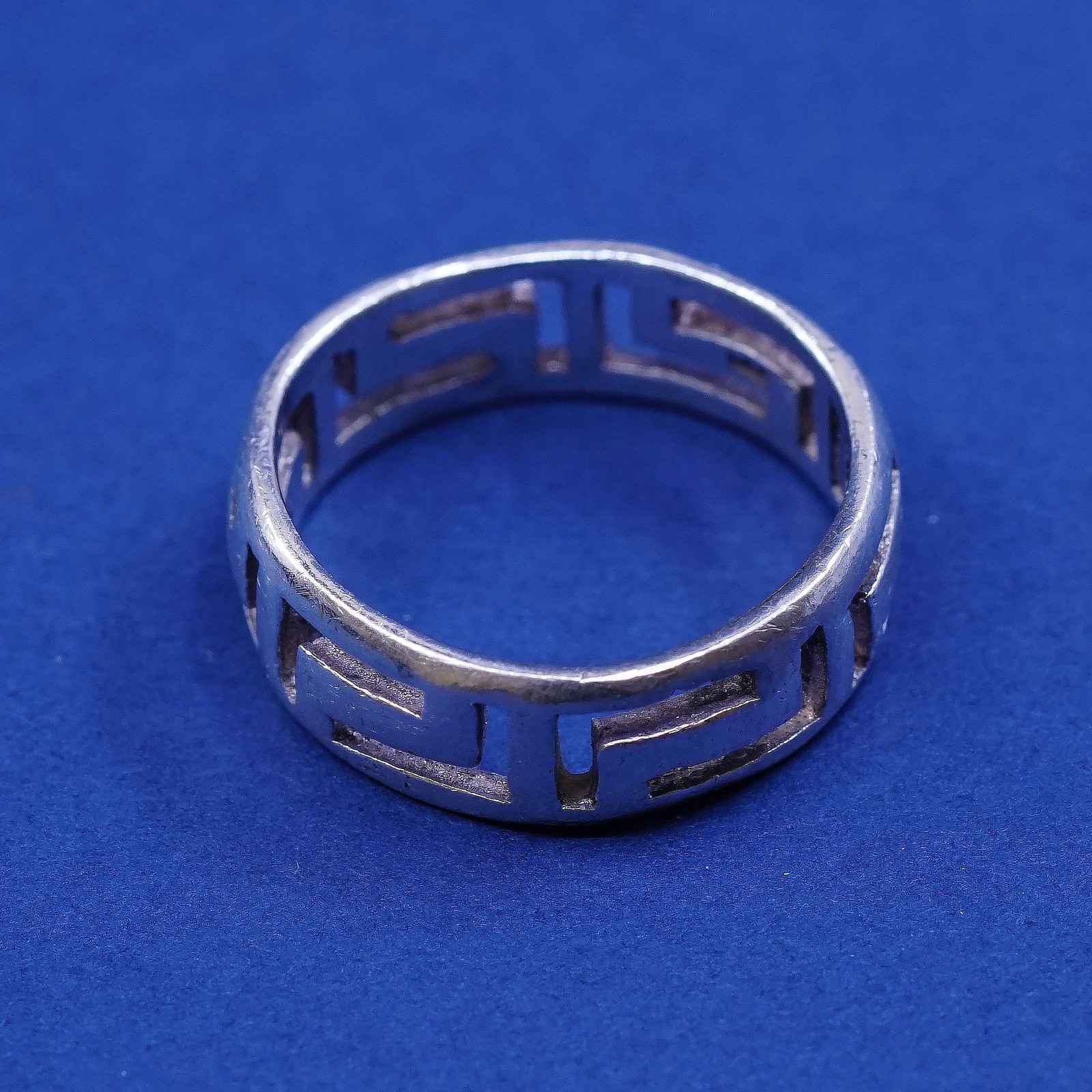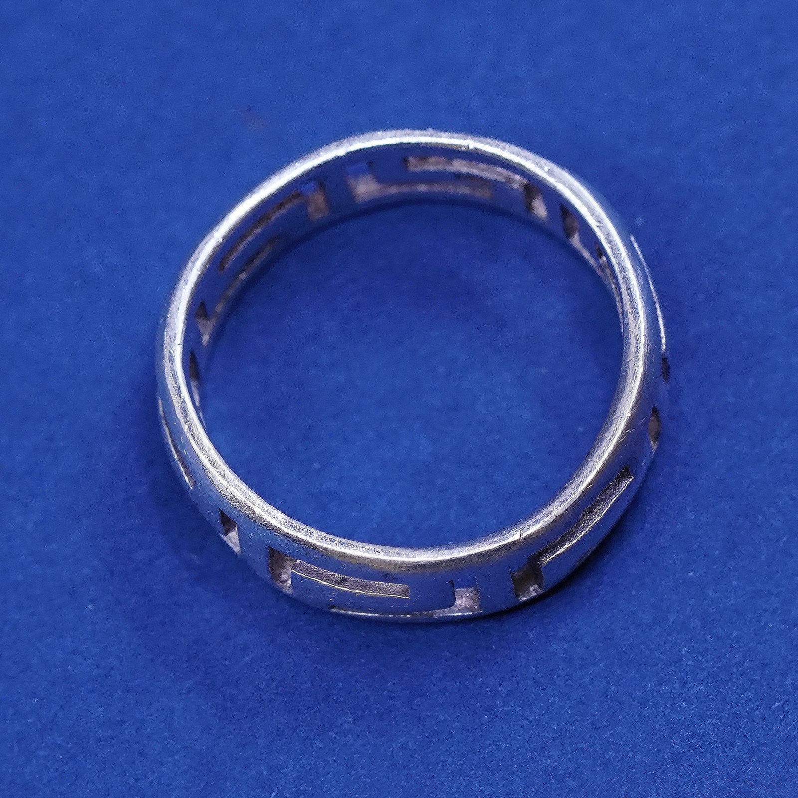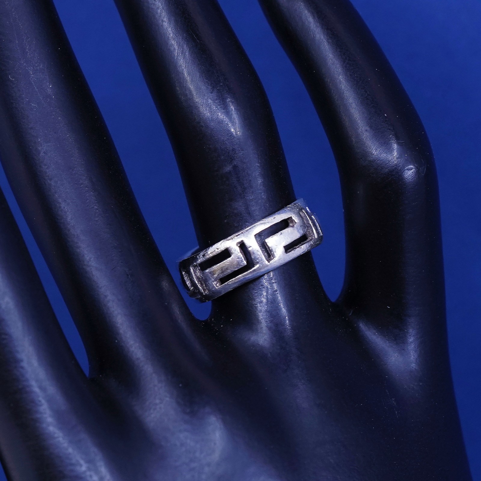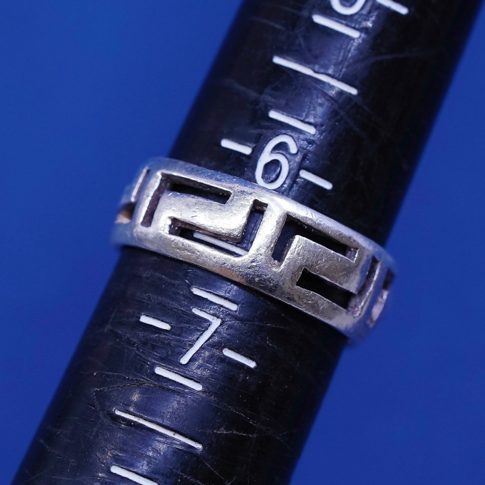 sz 6.5, vtg Sterling silver handmade ring, 925 band w/ Greek key pattern