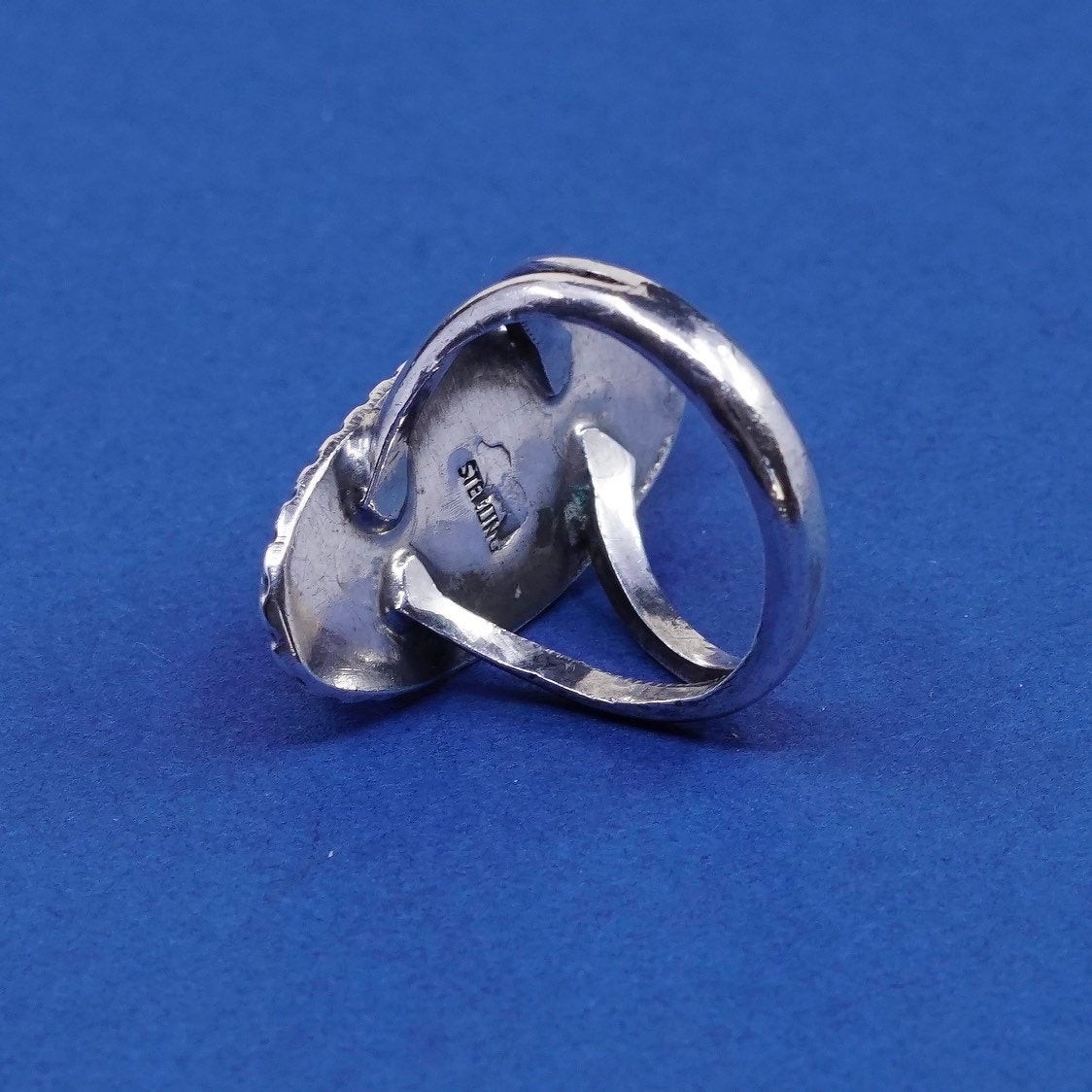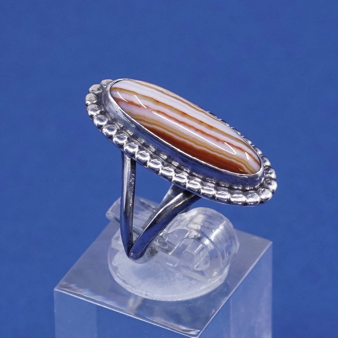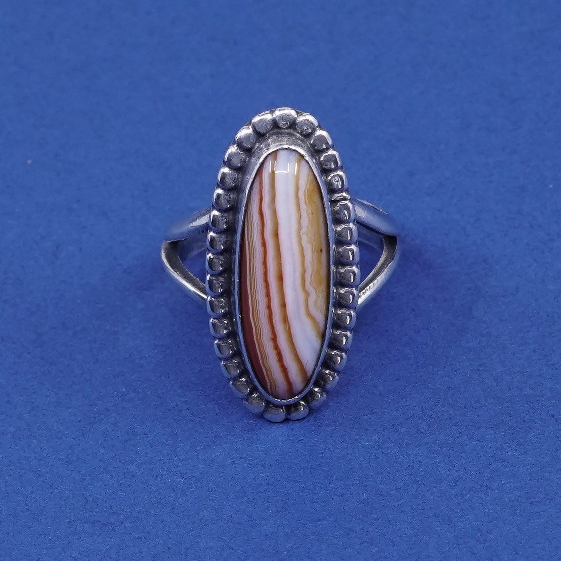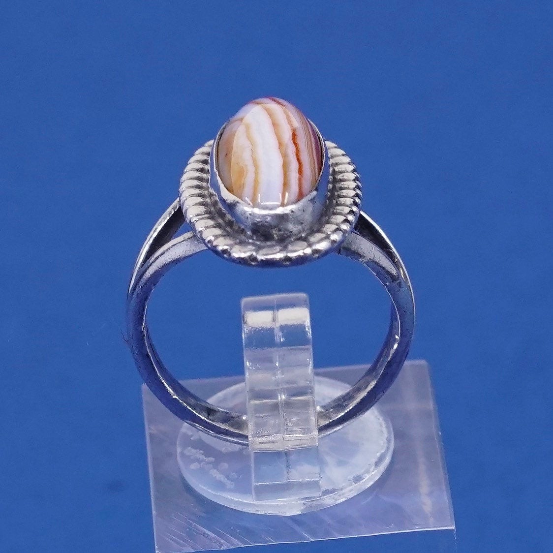 sz 6, vtg Sterling silver handmade ring, 925 w/ red lace agate N beads