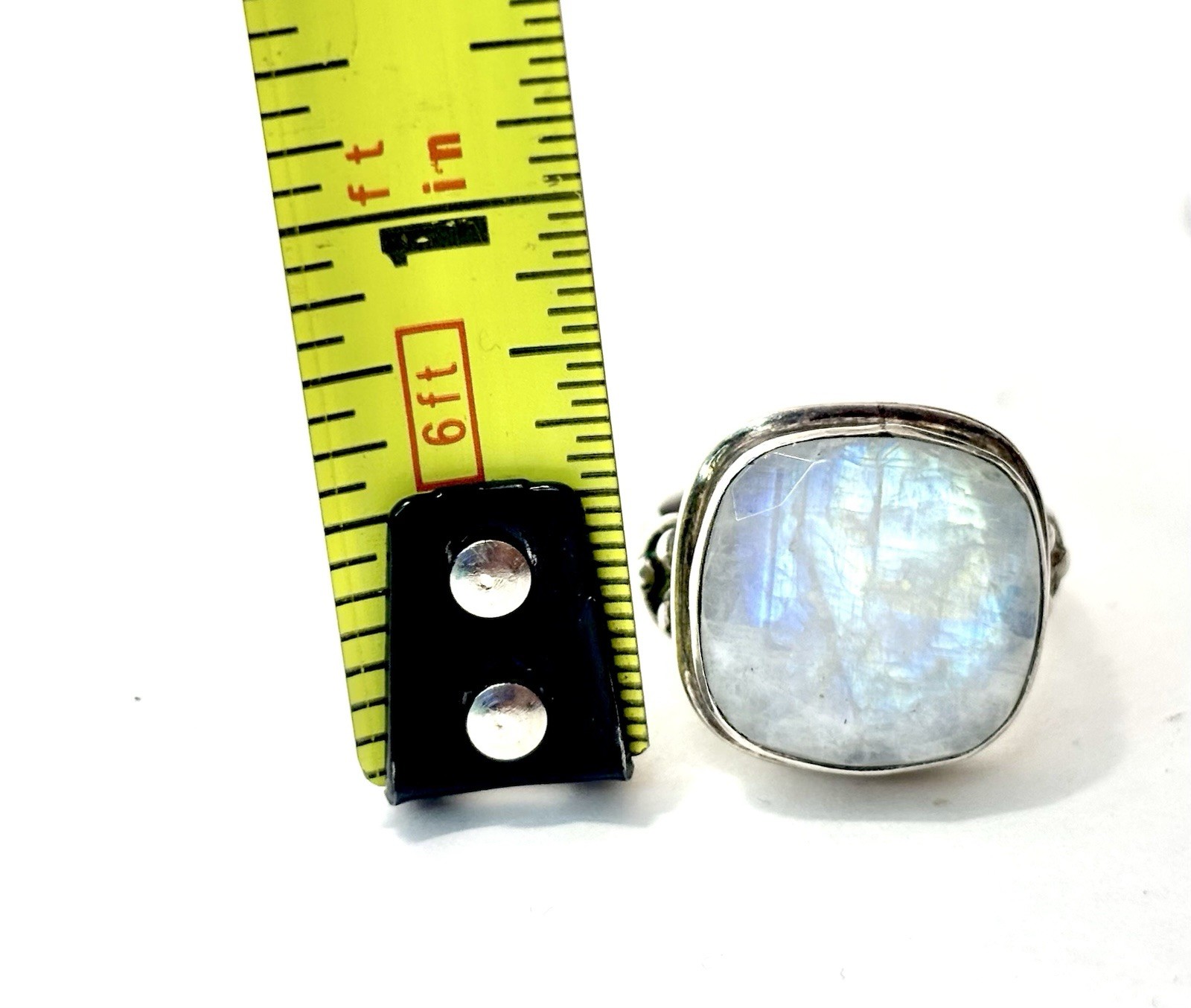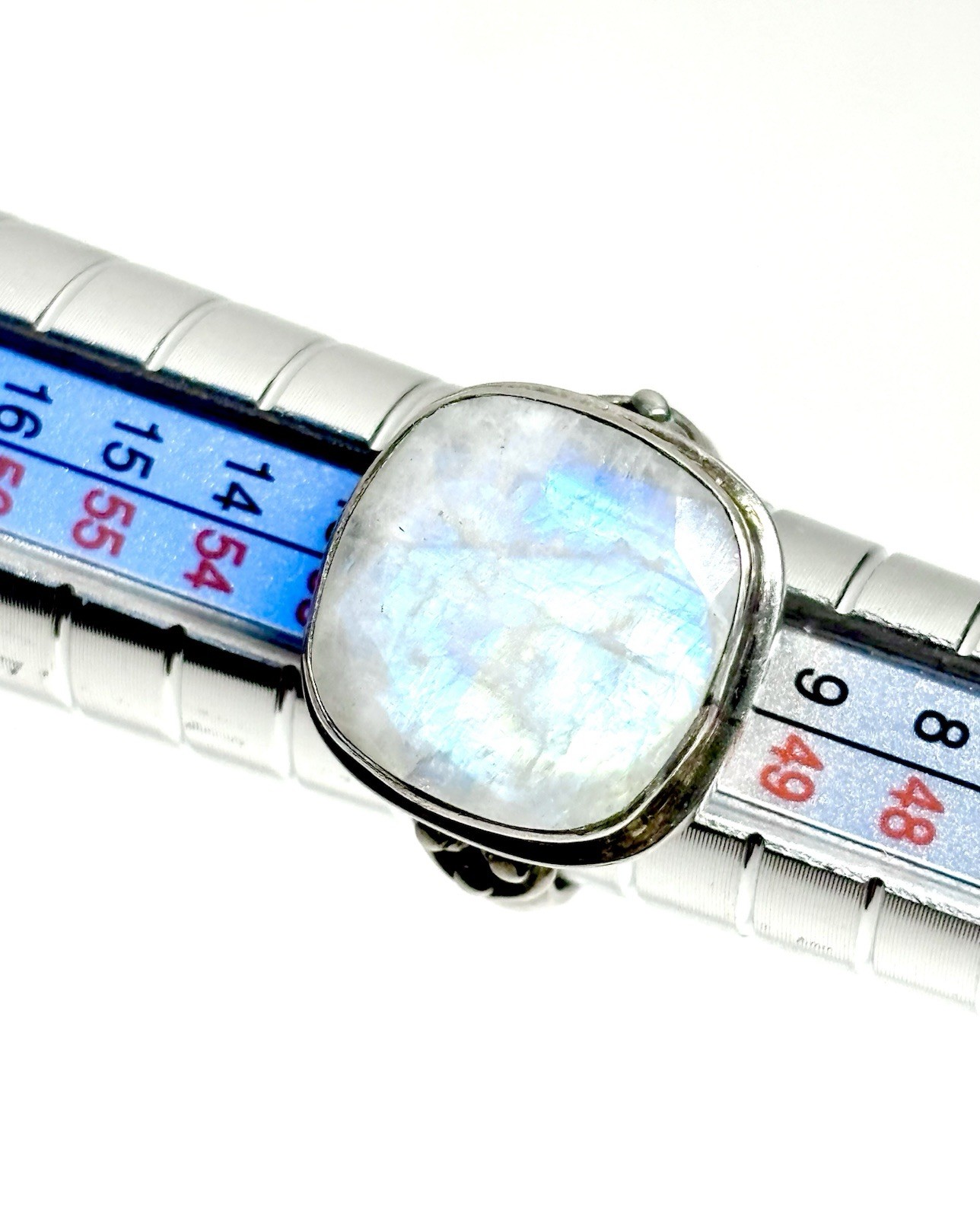 как выглядит Natural Rainbow Moonstone Ring 925 Sterling Silver Boho Raw Statement Sz 6 фото
