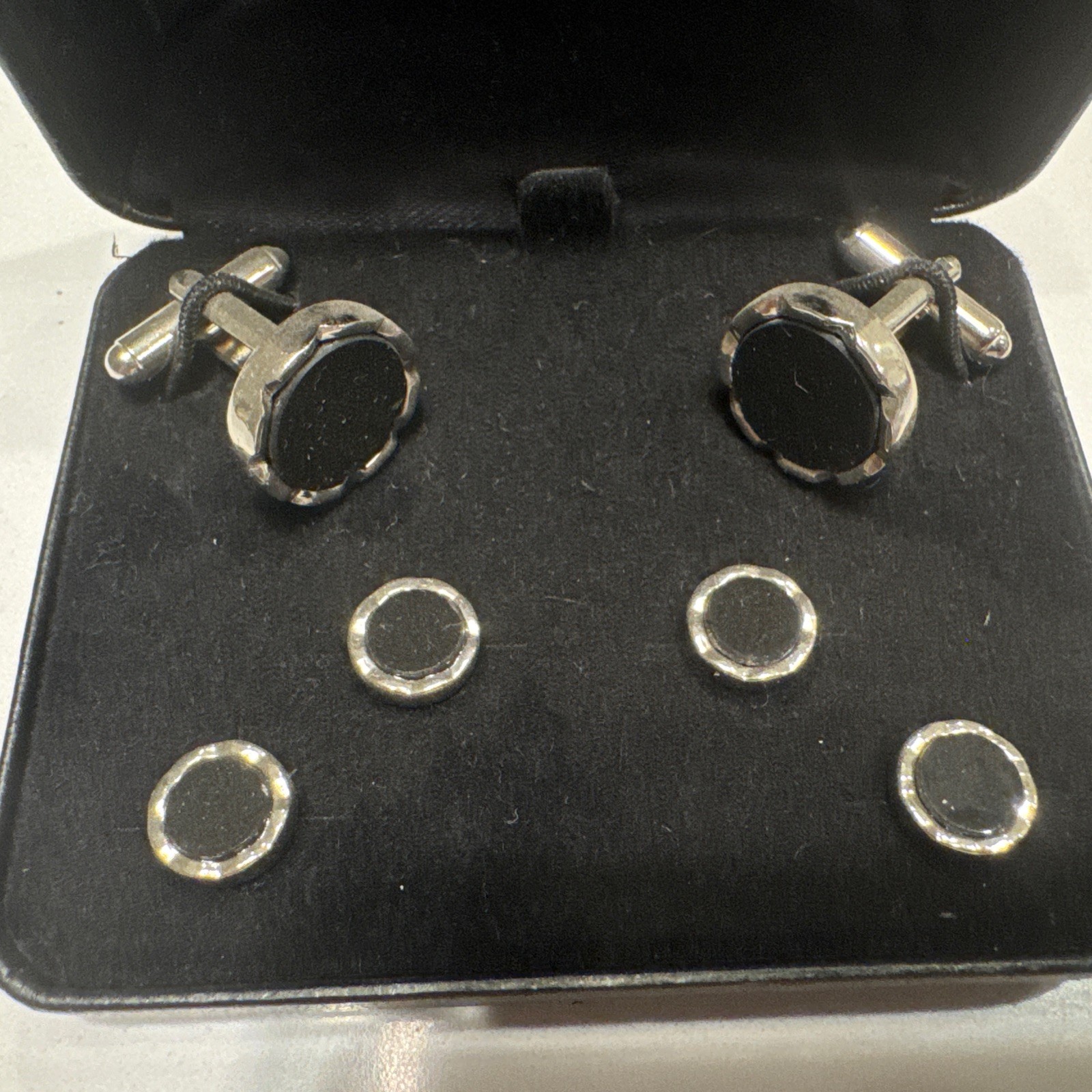 Jascott Silver Tone and Onyx Cufflinks and Studs