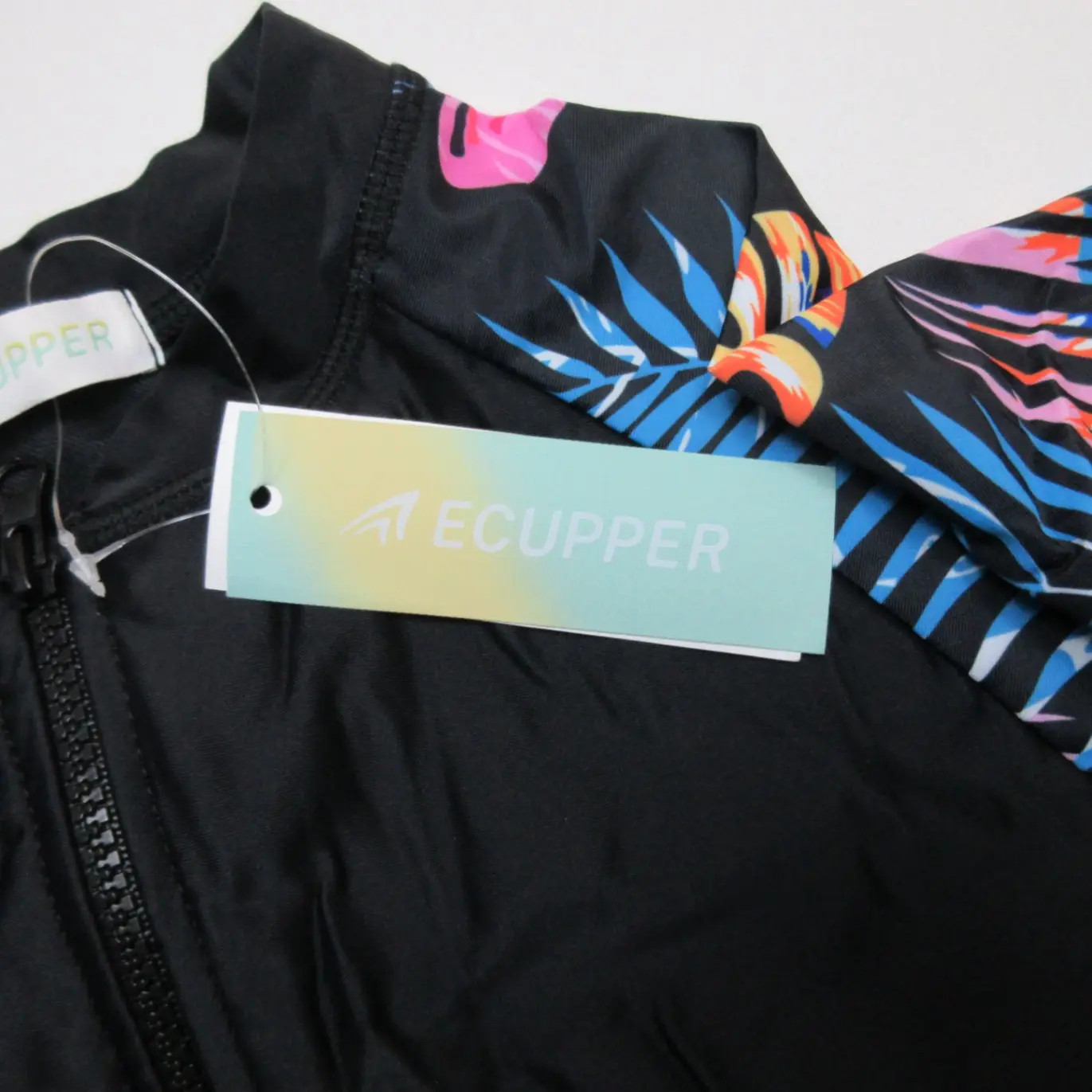 как выглядит Ecupper Womens One Piece Swimsuit Sz L Black Tropical Leaf Rash Guard фото