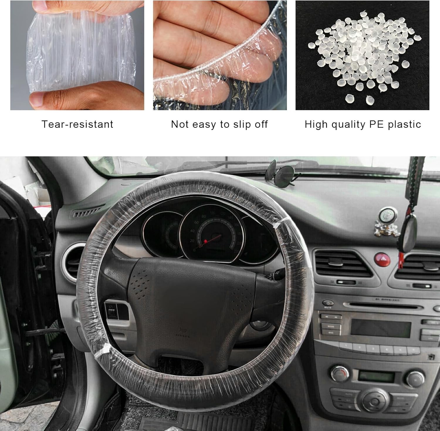 • 100 PCS Disposable Steering Wheel Cover, Plastic Clear Auto Steering Wheel P