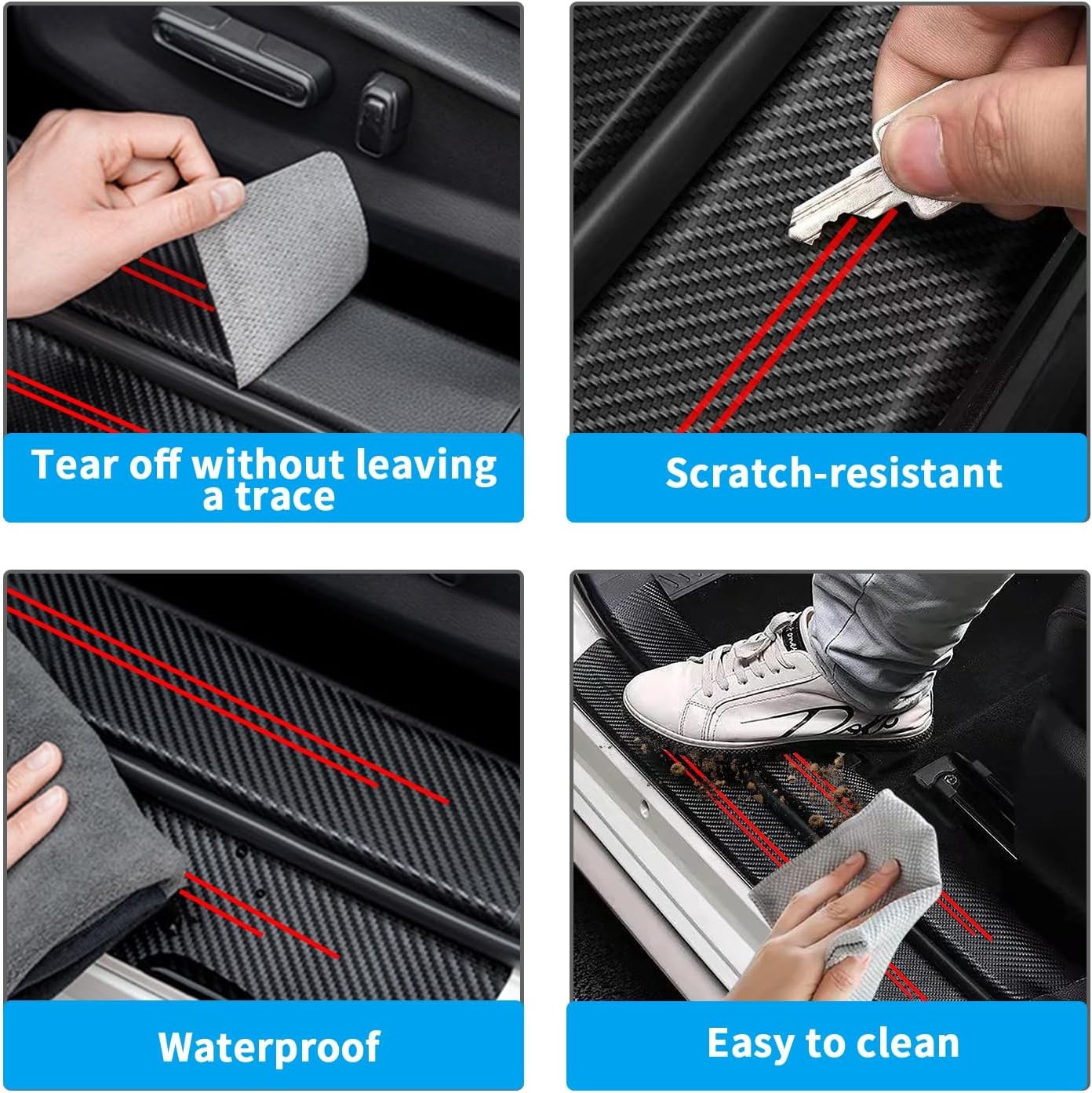 Car Door Sill Protector, Scratch Resistant Door SillB-Red-4pcs