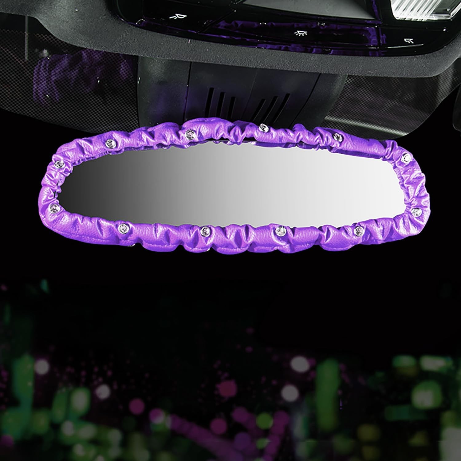 3 Packs Elastic Bling Rear View Mirror Cover, Crystal Leather Auto Rear Purple