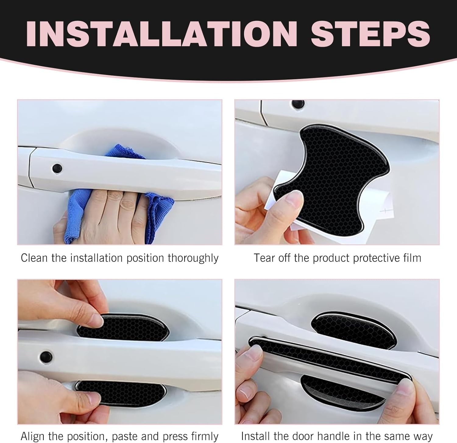 8 PCS Door Handle Protection Stickers, Carbon Fiber Door-8 PCS-Black
