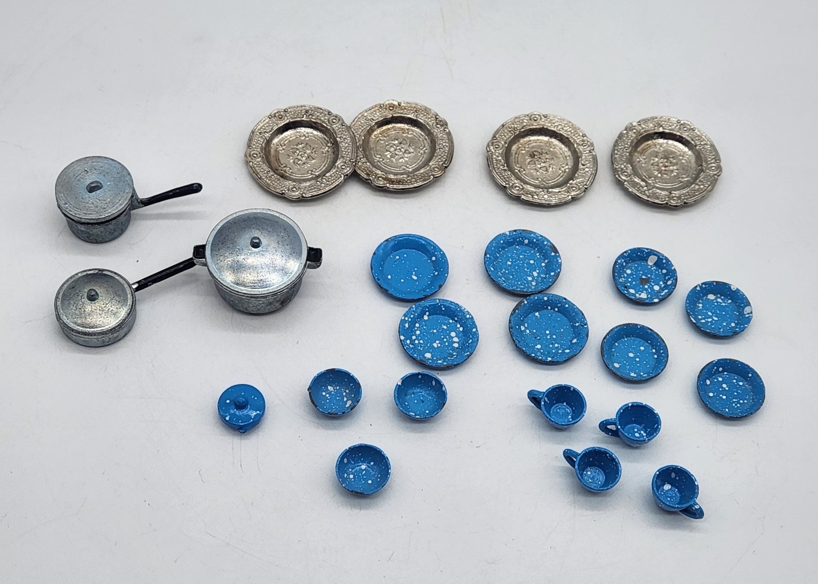 • Dollhouse Miniature Blue Enamelware Cookware Set Pots Pans