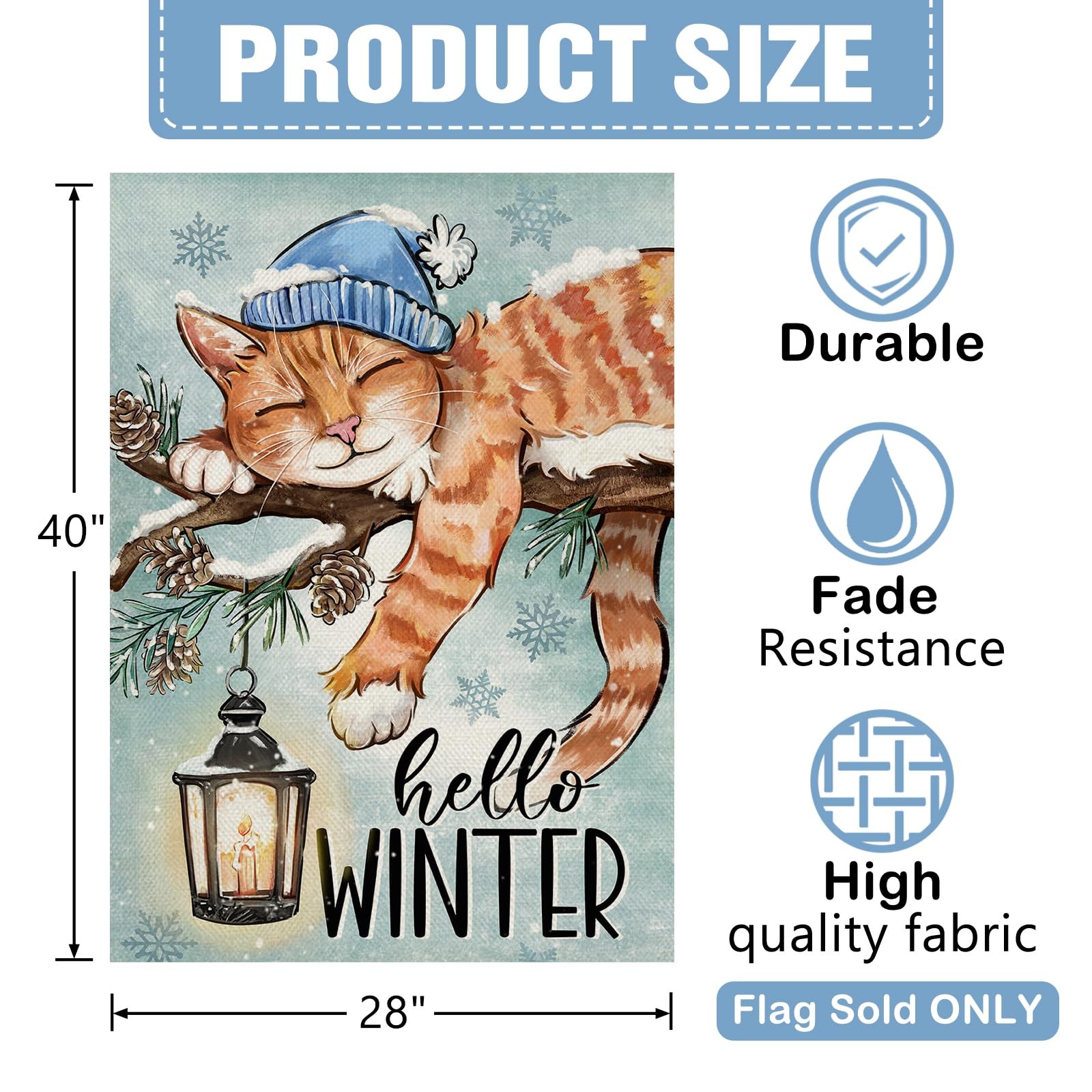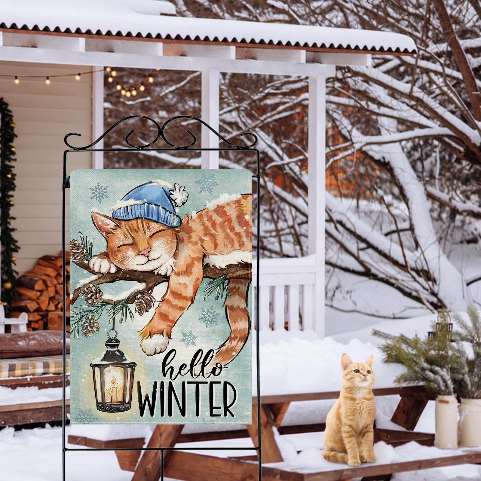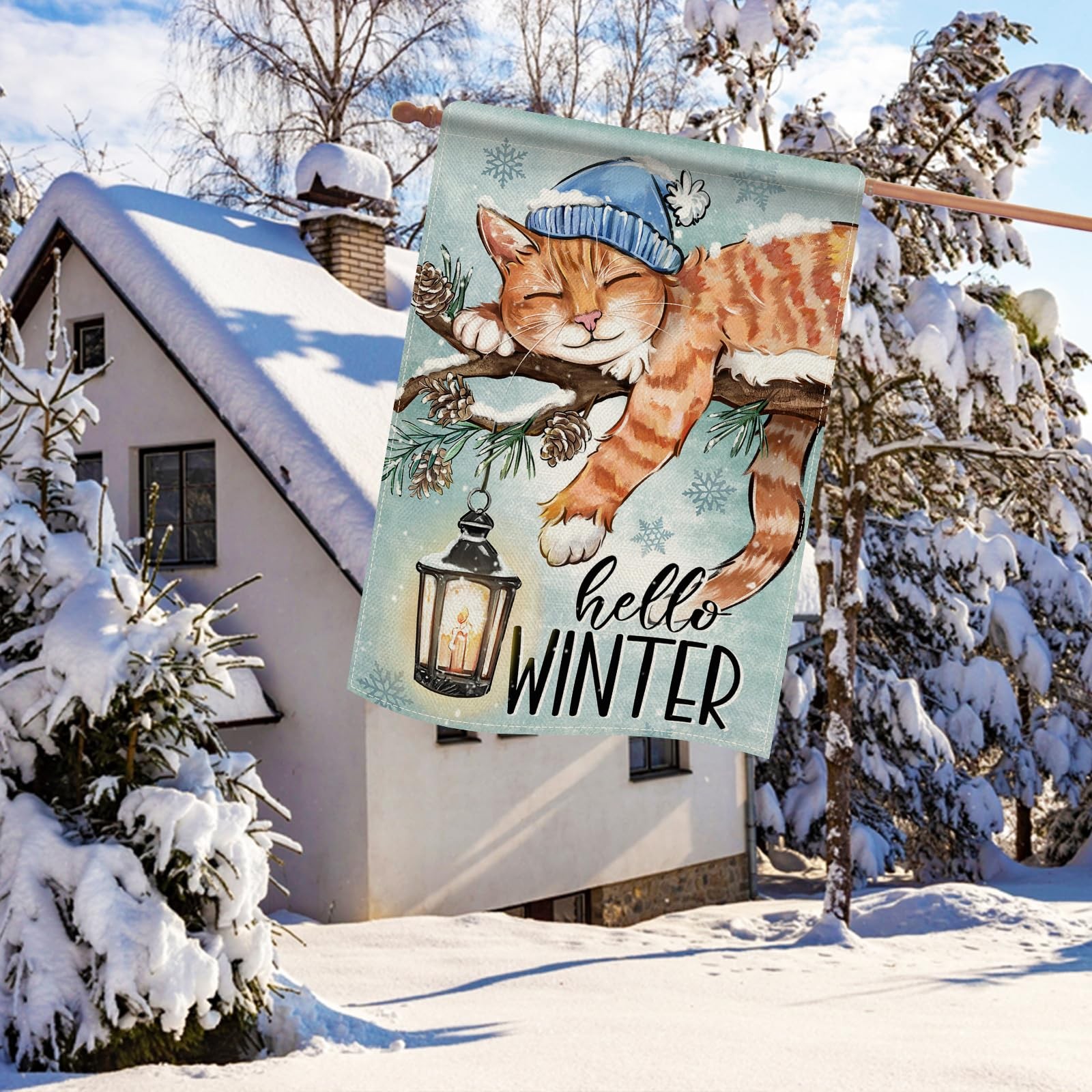 Hello Winter Orange Cat 28 x 40 House Flag Double Sided, Pine Branch Lantern ...