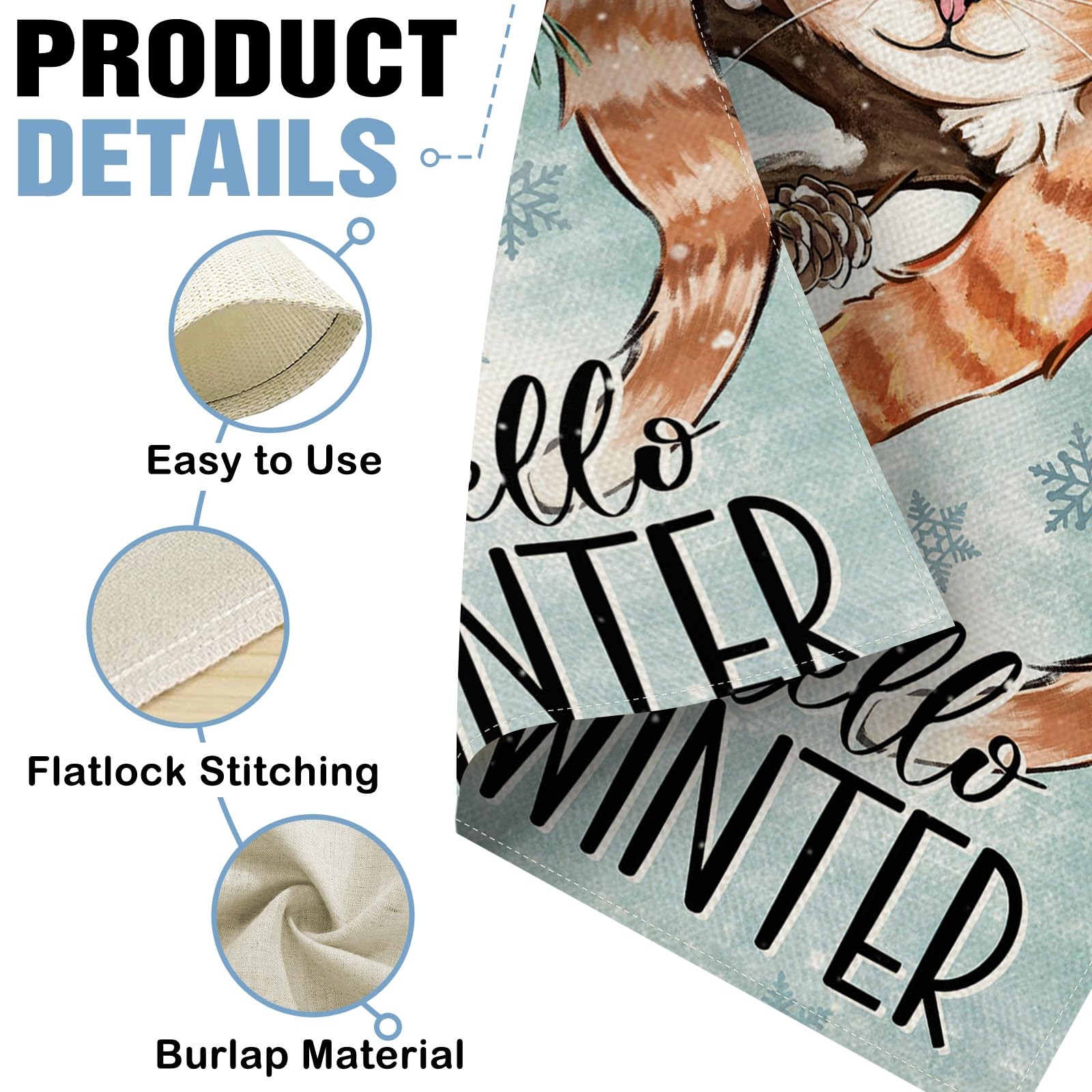как выглядит Hello Winter Orange Cat 28 x 40 House Flag Double Sided, Pine Branch Lantern ... фото