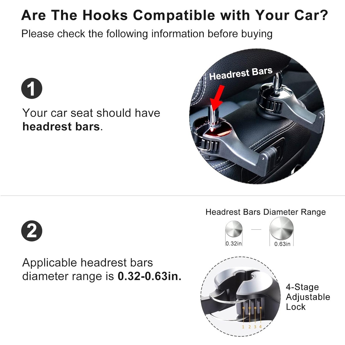 2 Pack Upgraded Car Headrest Hidden Hook 2 in 1 Car Seat Hooks with Phone Holder