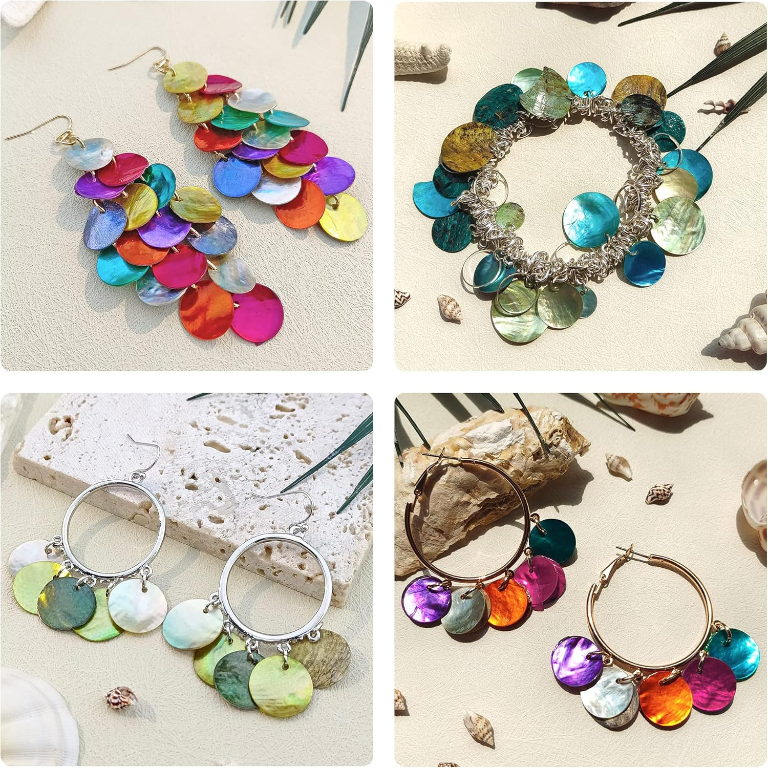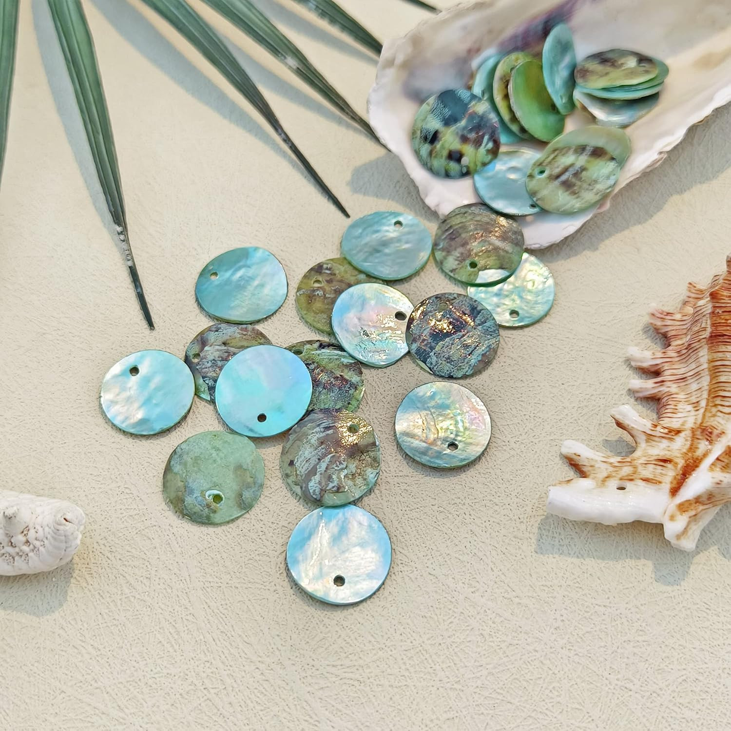 Shell Beads 150Pcs Natural 15Mm Flat round Mussel Shell Coin Drop Charm Beads wi