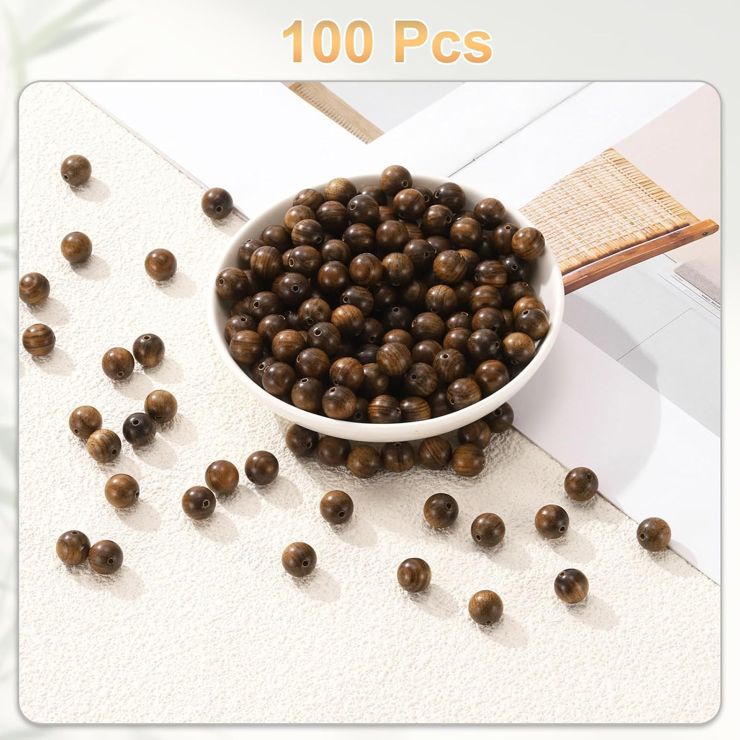 100Pcs Natural Wooden Beads 10Mm Black Rosewood round Polished Loose Bead Smooth
