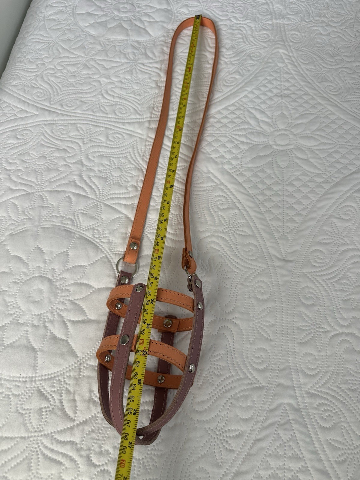 как выглядит Leather basket muzzle for dogs, breathable, anti-barking фото