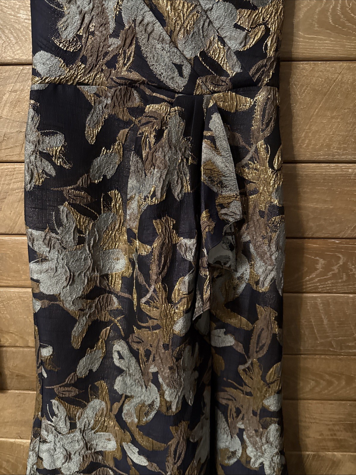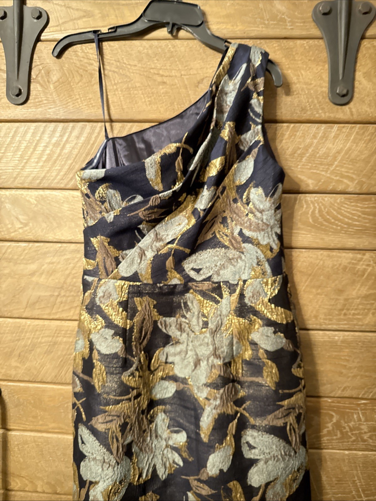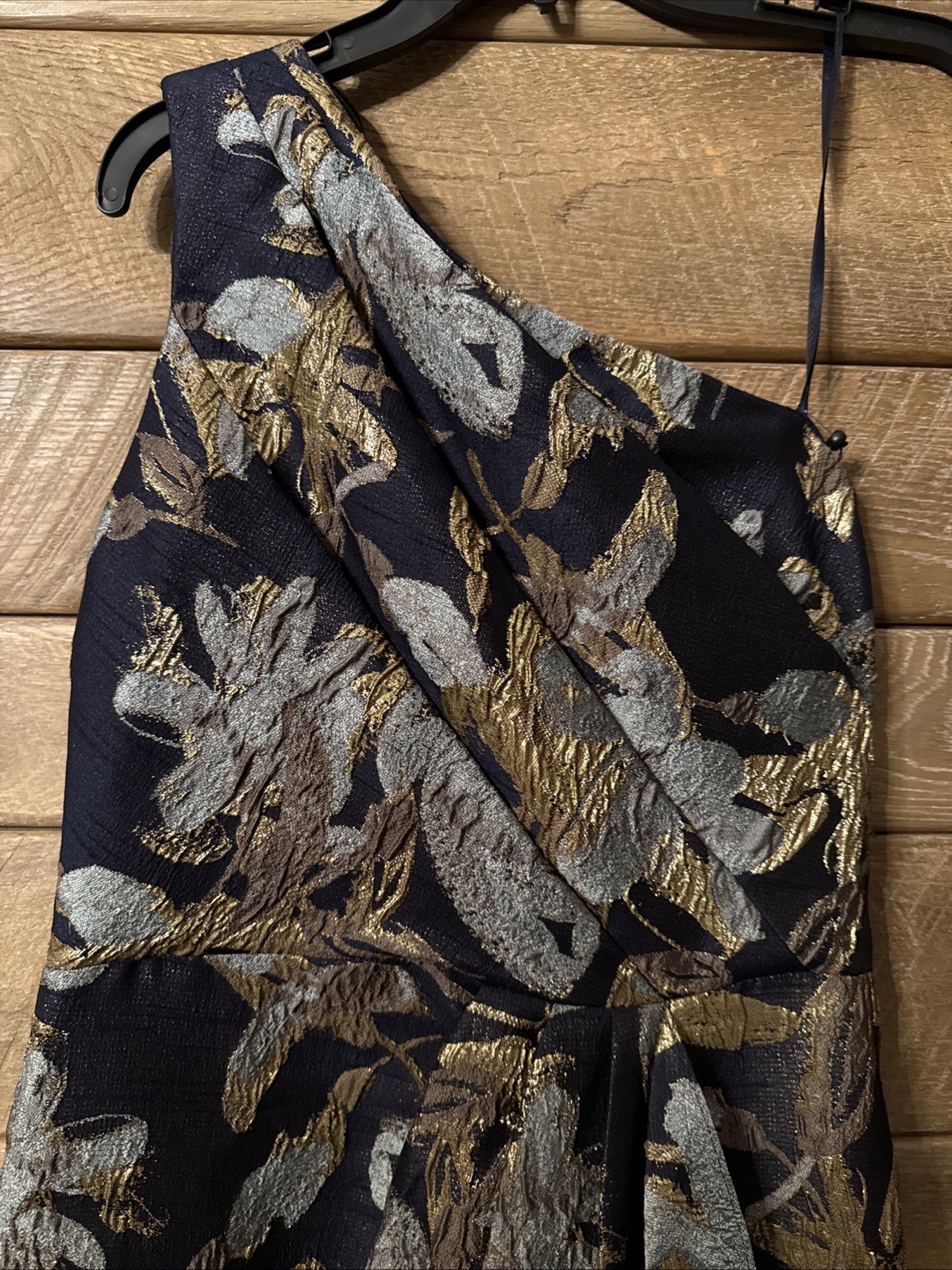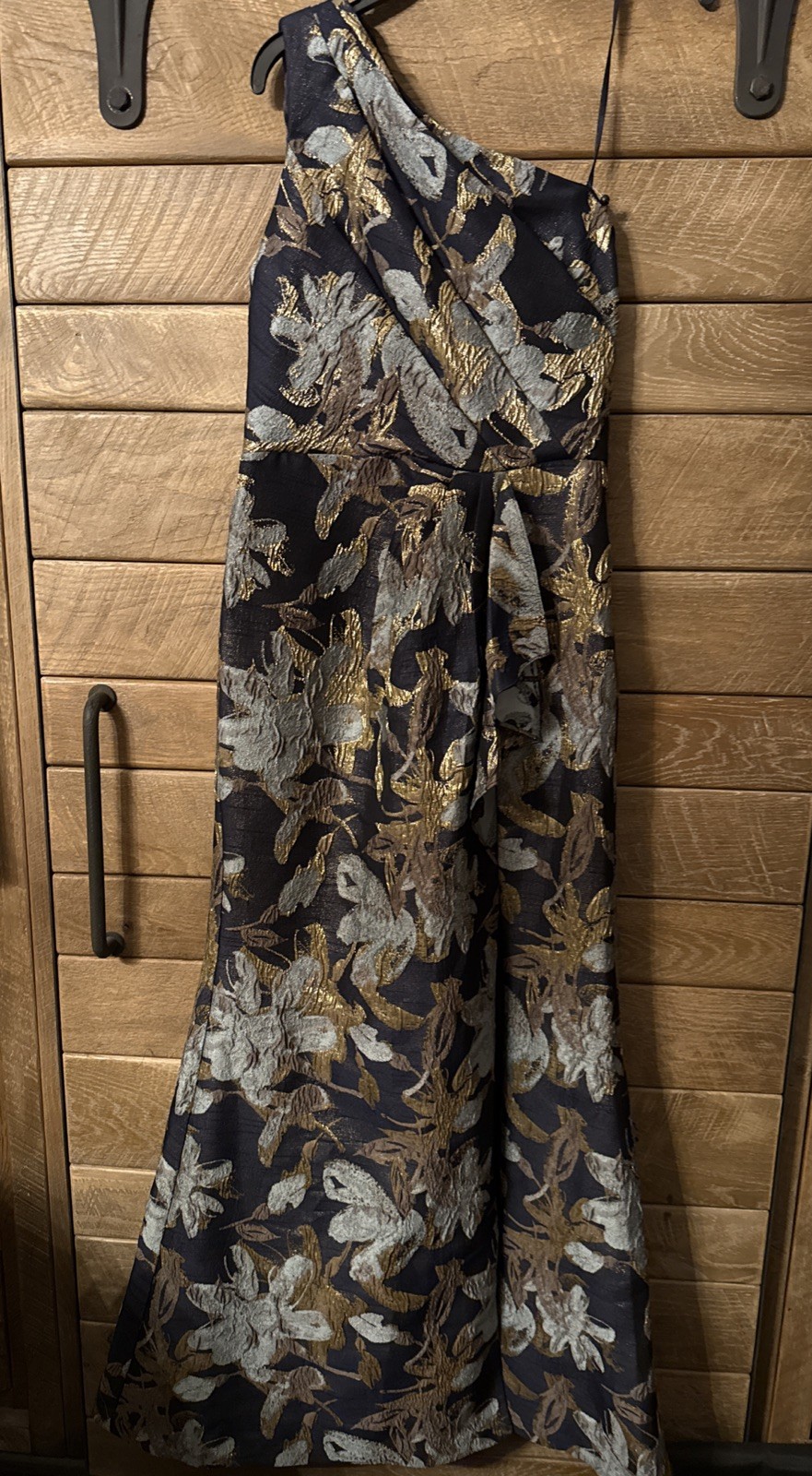 как выглядит Adrianna Papell One Shoulder Jacquard Gown sz 8 Blue Gold New фото