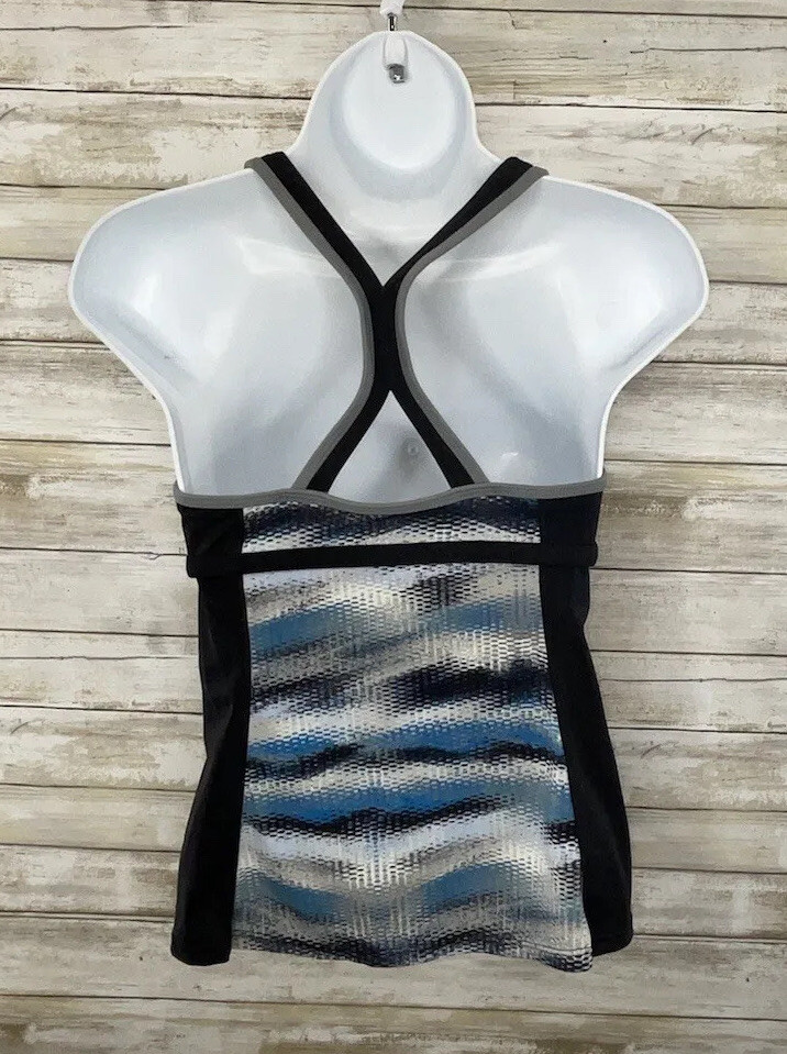 Nike Swim Tankini Top Racerback Black Blue Multi Padded Bra Women's Small EUC