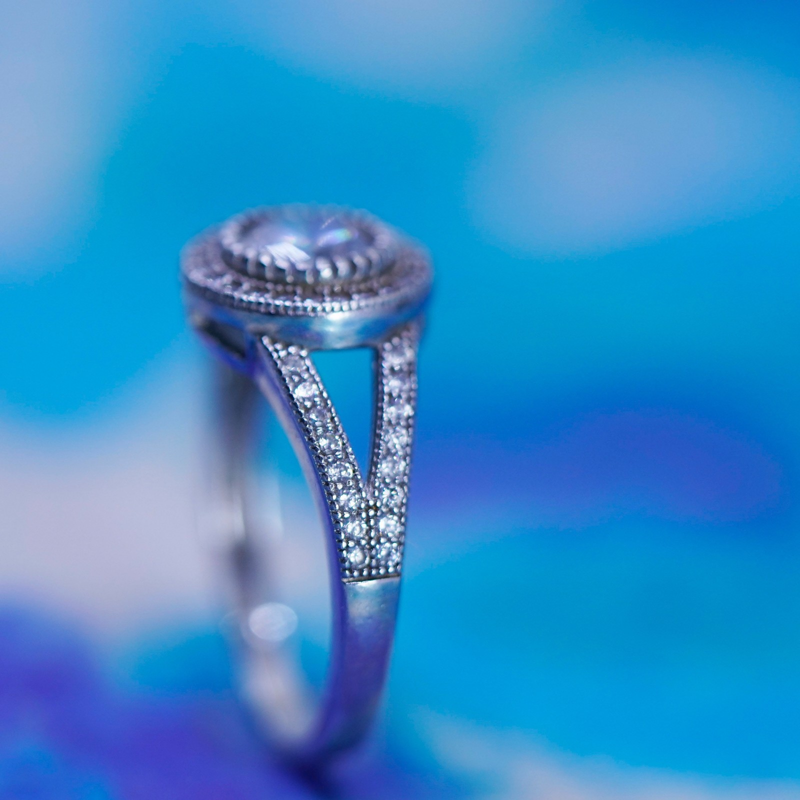 Size 8, vintage Sterling 925 silver engagement ring with cluster Cz around