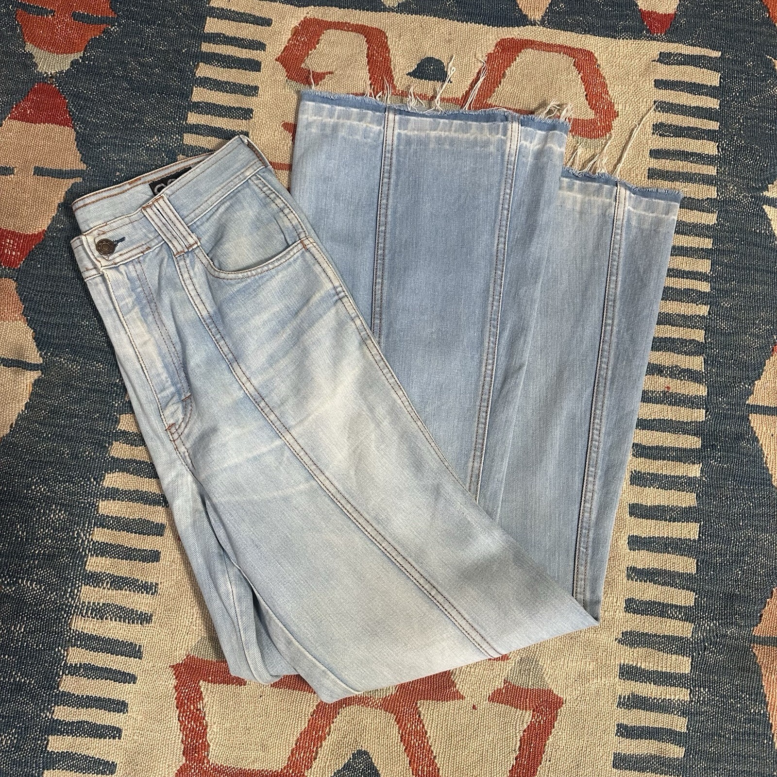 Vintage 1970s light wash distressed high waisted bell bottom jeans gap denim
