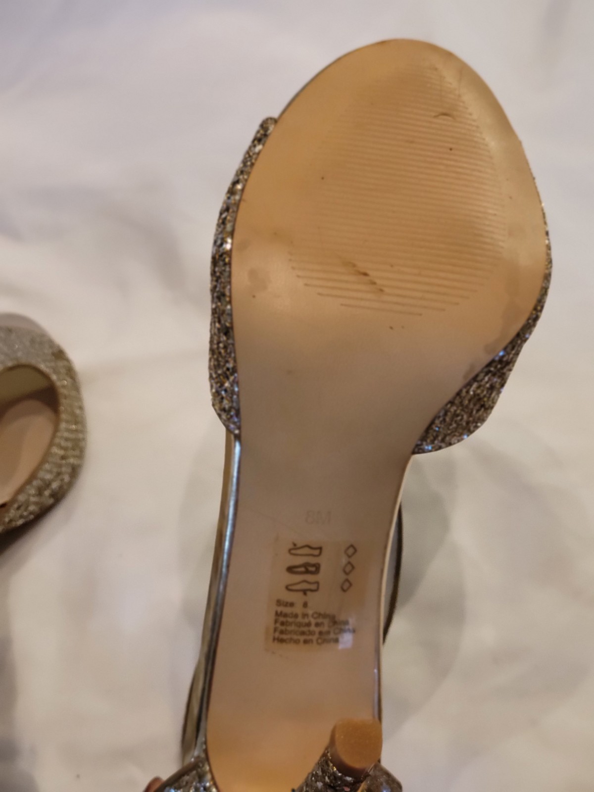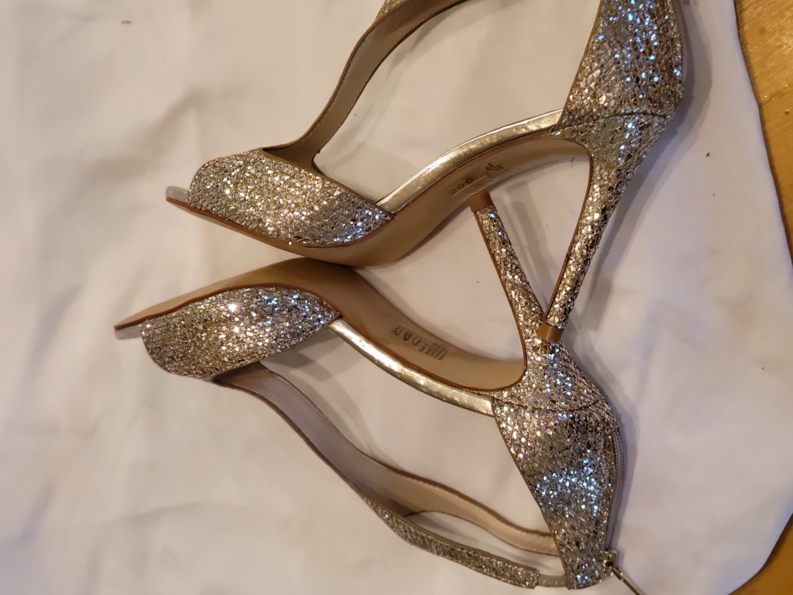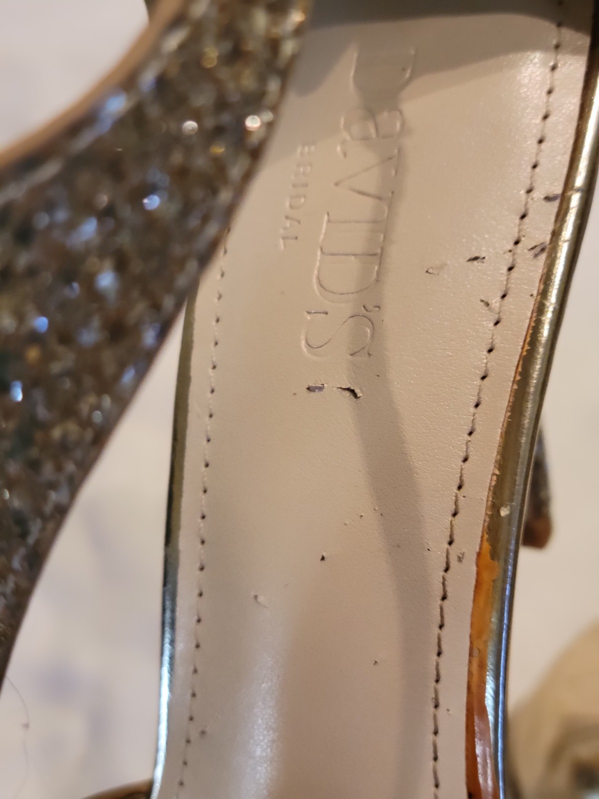 как выглядит Davids Bridal Silver Glitter/Gold Accents Bridal Formal Party Shoe Sz 8 Bk Zip фото