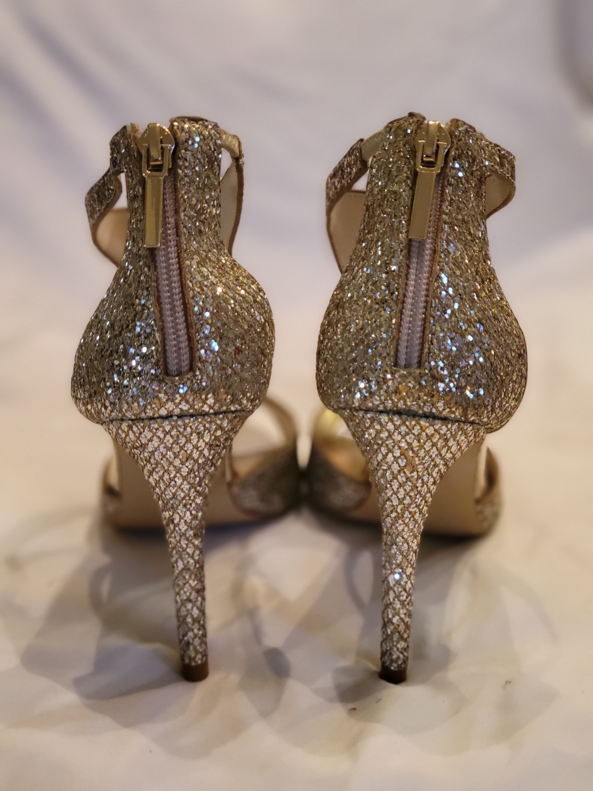David's Bridal Silver Glitter/Gold Accents Bridal Formal Party Shoe Sz 8 Bk Zip