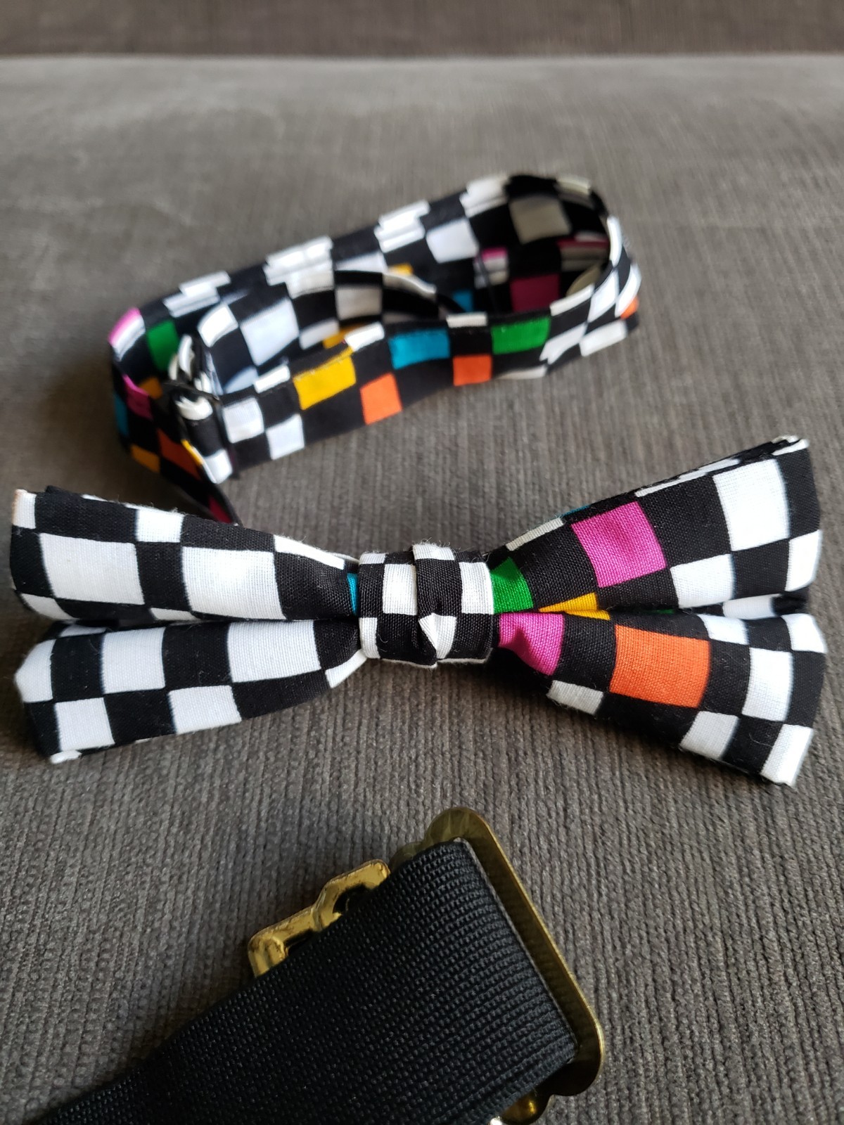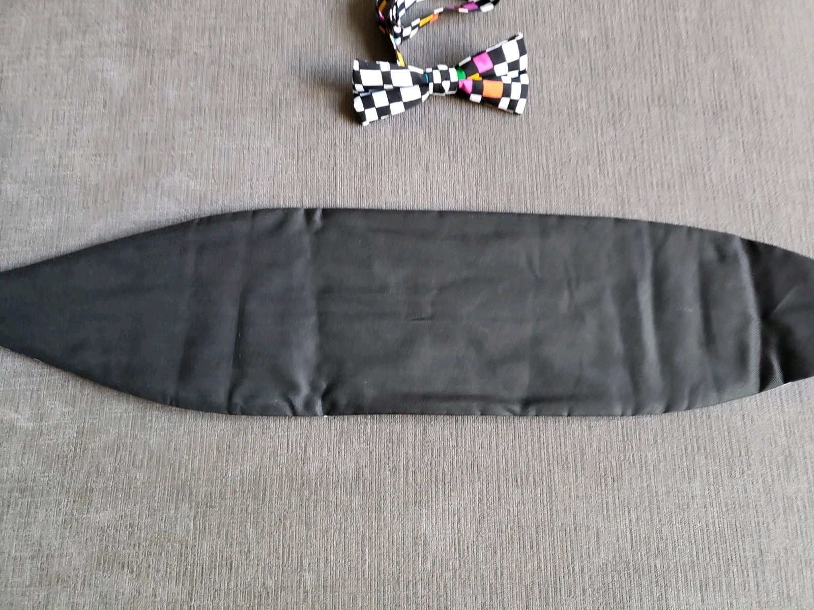 как выглядит Vintage 90s Brandon Michael Cummerbund Bow Tie Set - CHECKERBOARD - EXCELLENT фото