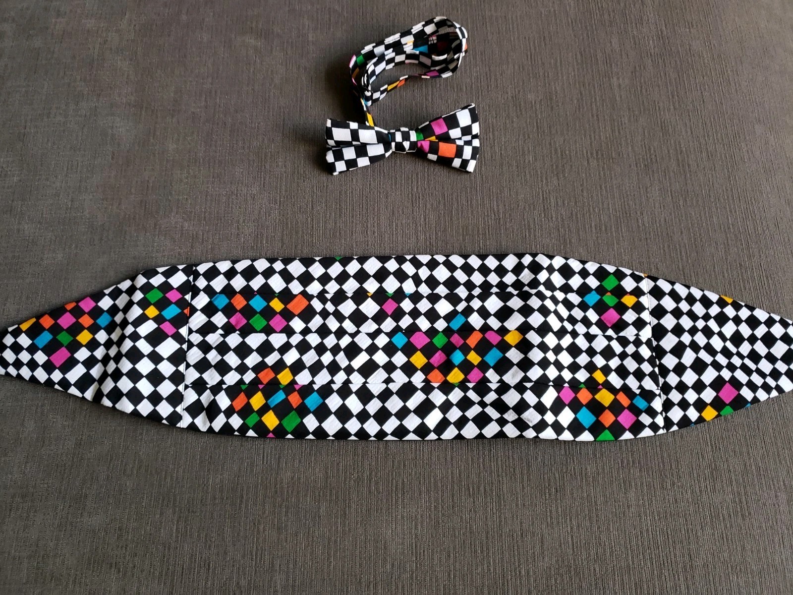 Vintage 90's Brandon Michael Cummerbund Bow Tie Set - CHECKERBOARD - EXCELLENT