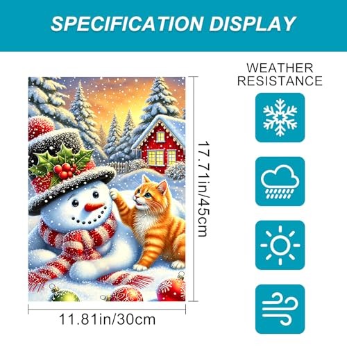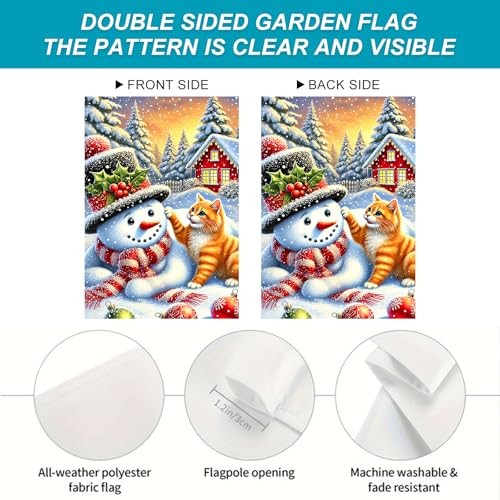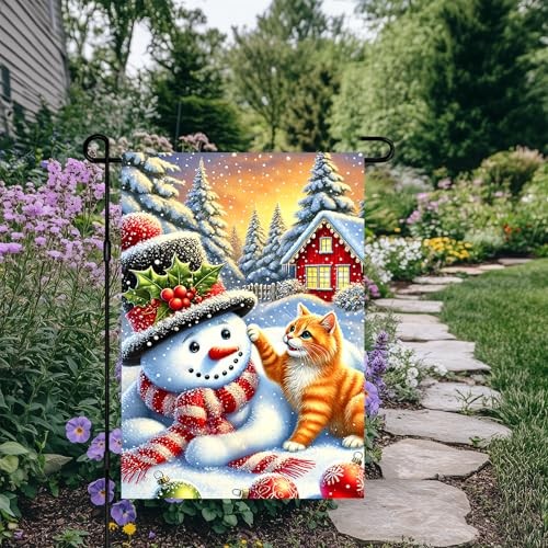 Merry Christmas Garden Flag 12x18 Inch Playing with Snowman Flag Snowy Cat