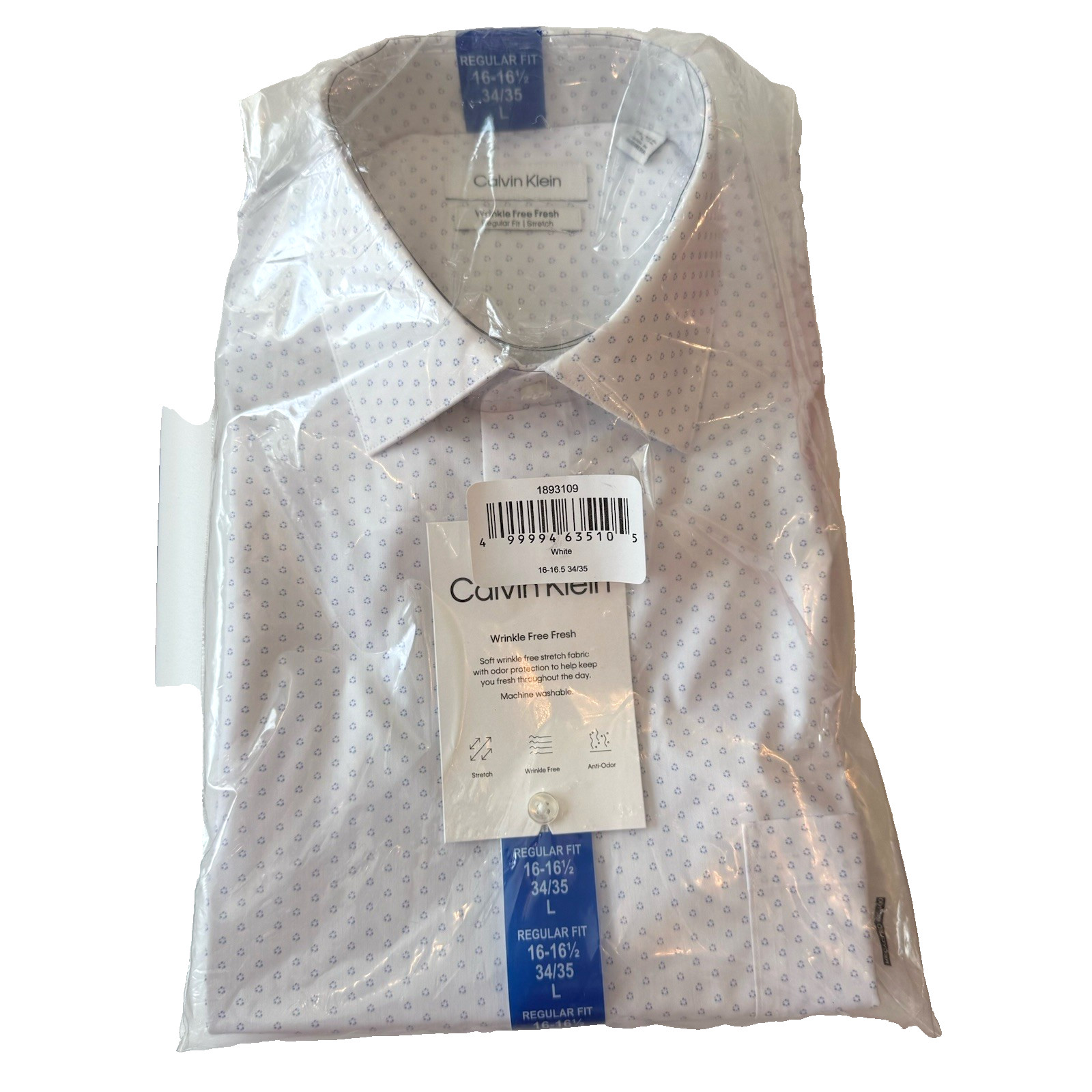 как выглядит Calvin Klein Dress Shirt Mens Sz Large 16-16.5 34/35 White Blue Wrinkle Free NWT фото