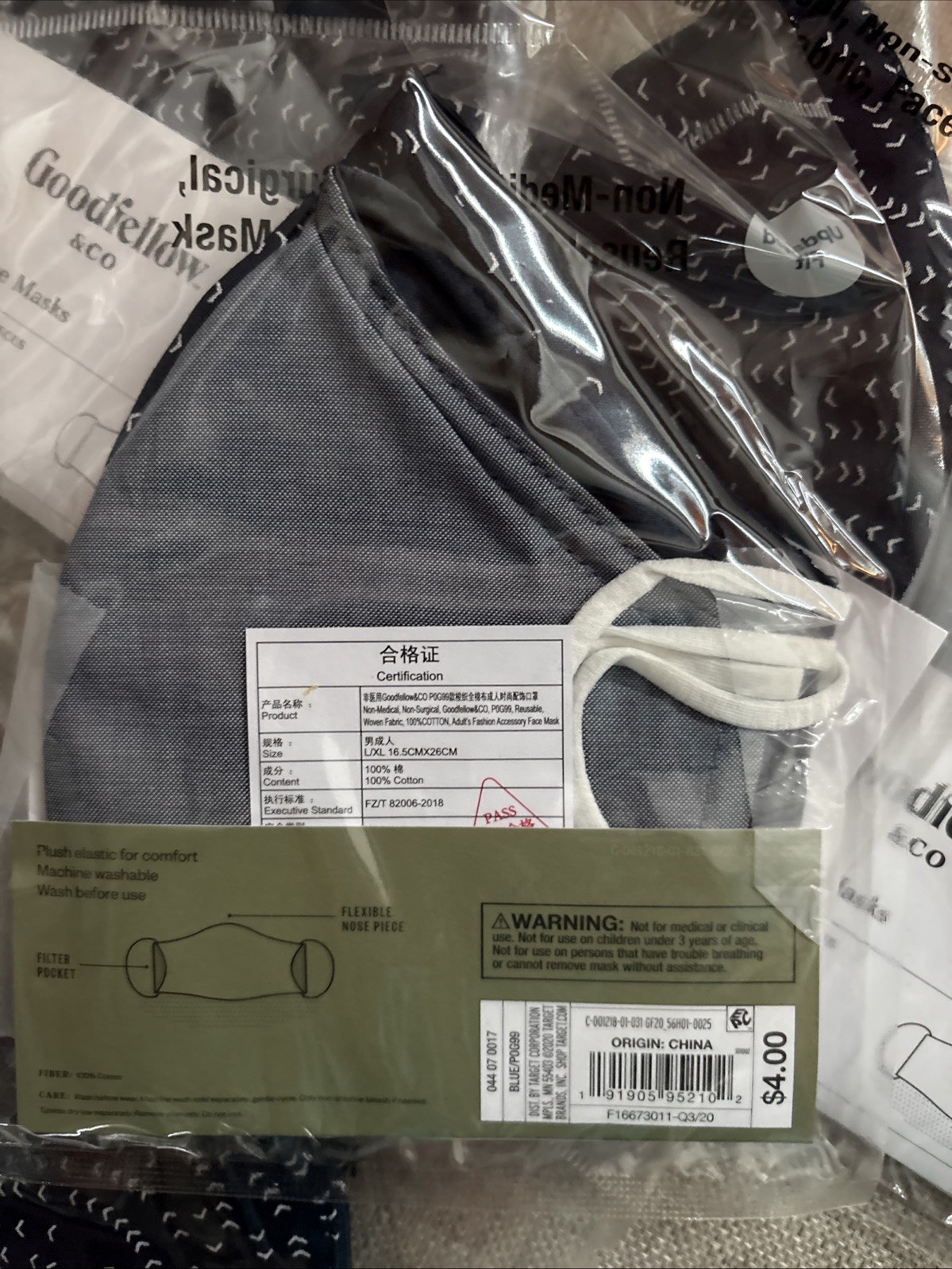 Goodfellow Co 2 PK Adult Reusable Fabric Face Mask large XL Blue 6pks