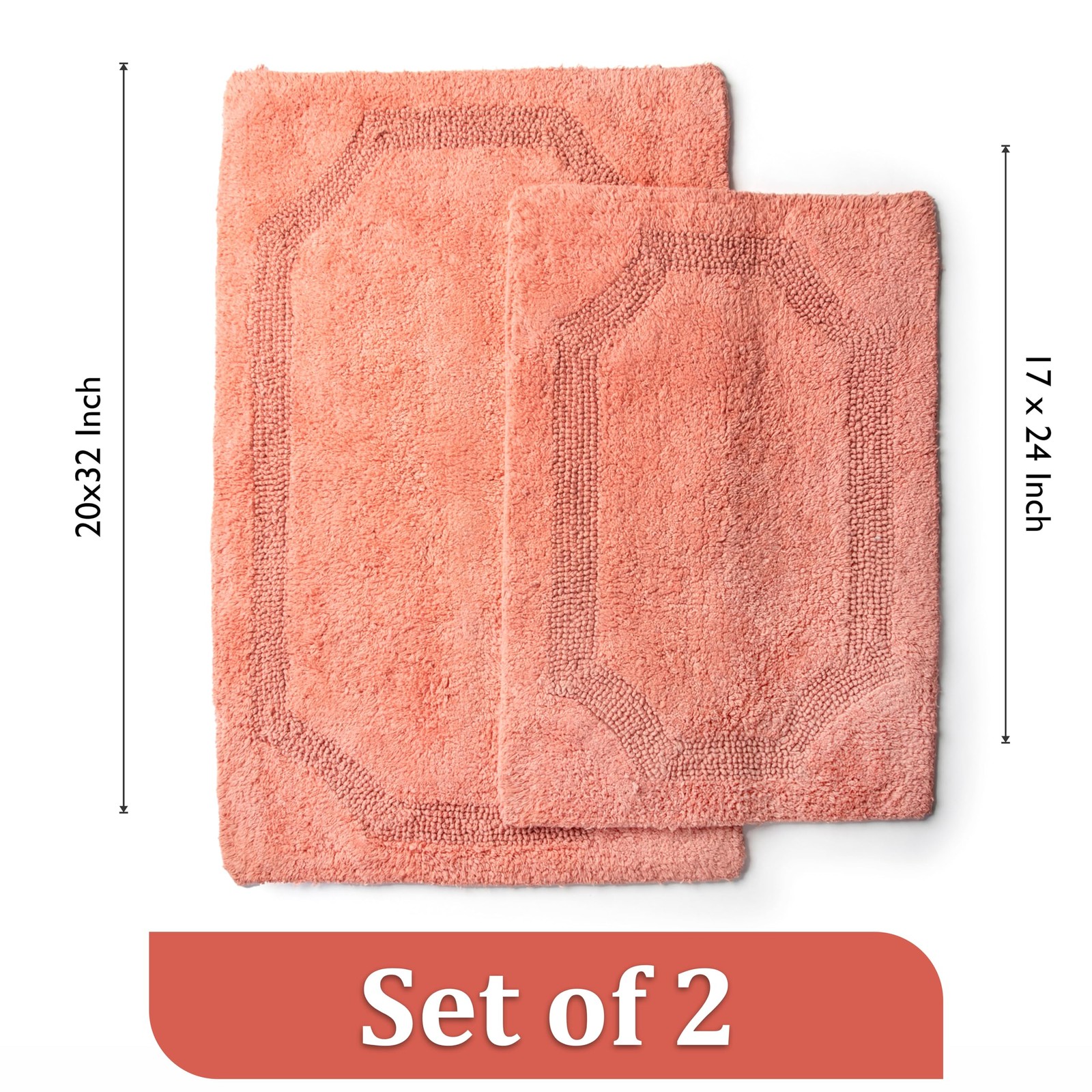 Set of 2 Reversible Bath Rug 20x32 inch -17x24 inch 100 Cotton Hand Tufted...