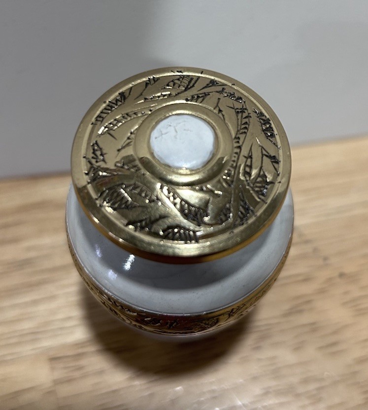 как выглядит Small Ceramic With Gold Accents Urn for small dog or cat mvbl фото